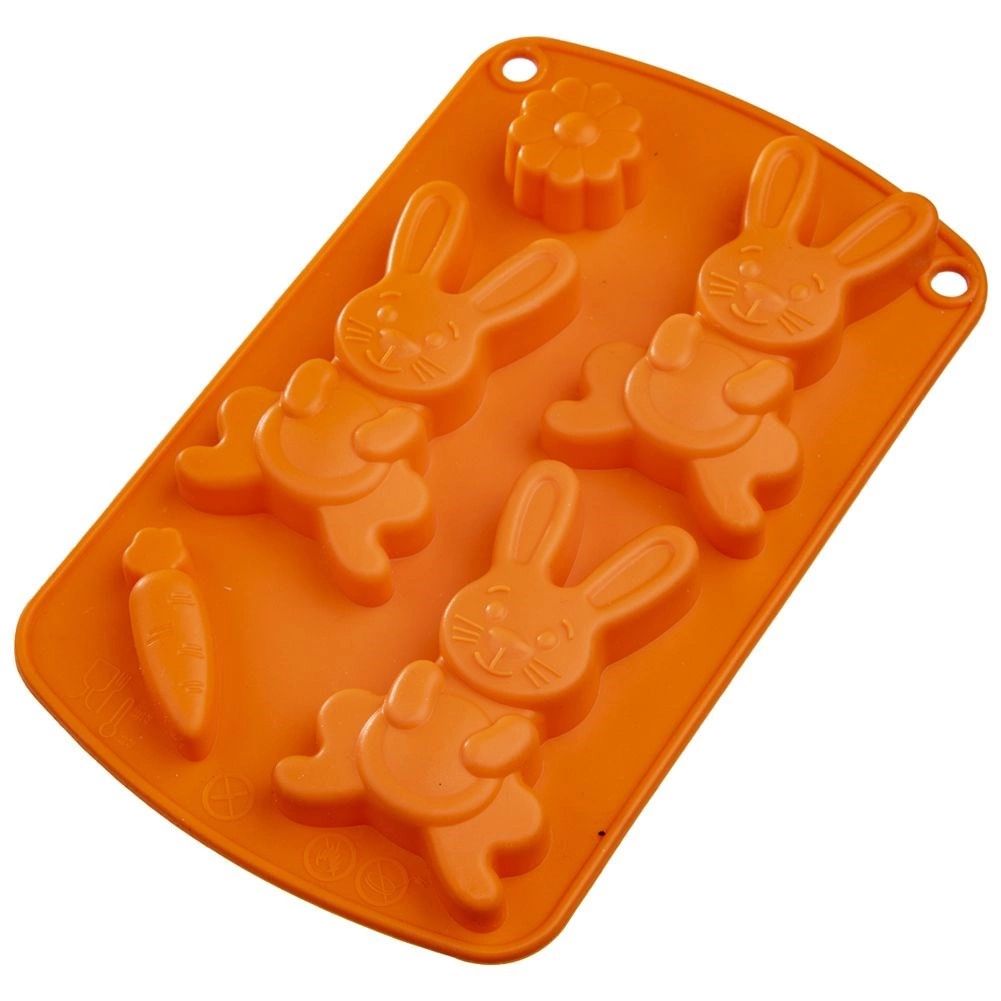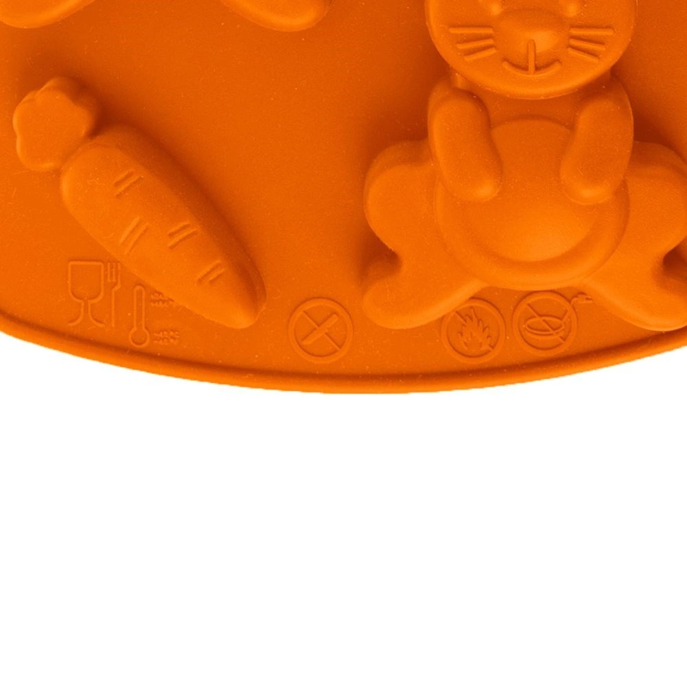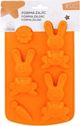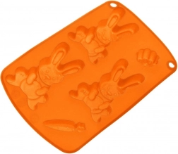 Praktikus szilikon forma sütéshez és csokoládékészítéshez nyuszi motívummal, ideális húsvétra és egész éves kreatív sütögetéshez. Mérete 21 × 13 × 2 cm, és lehetővé teszi legfeljebb 3 nyuszi alakú finomság, valamint további 2 motívum – répa és virág elkészítését. -40 °C-tól +220 °C-ig hőálló, alkalmas sütőbe, mikrohullámú sütőbe és fagyasztóba, és könnyen tisztítható – mosogatógépben mosható.