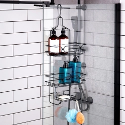 Ez a függő zuhanypolc a maximális kényelmet és rendezettséget szolgálja. Univerzális akasztójának köszönhetően könnyen elhelyezhető a zuhanyfejen, üveg paravánon vagy hagyományos akasztón – fúrás nélkül. A nyitott drótszerkezet elősegíti a víz gyors elfolyását és a higiénikus száradást.