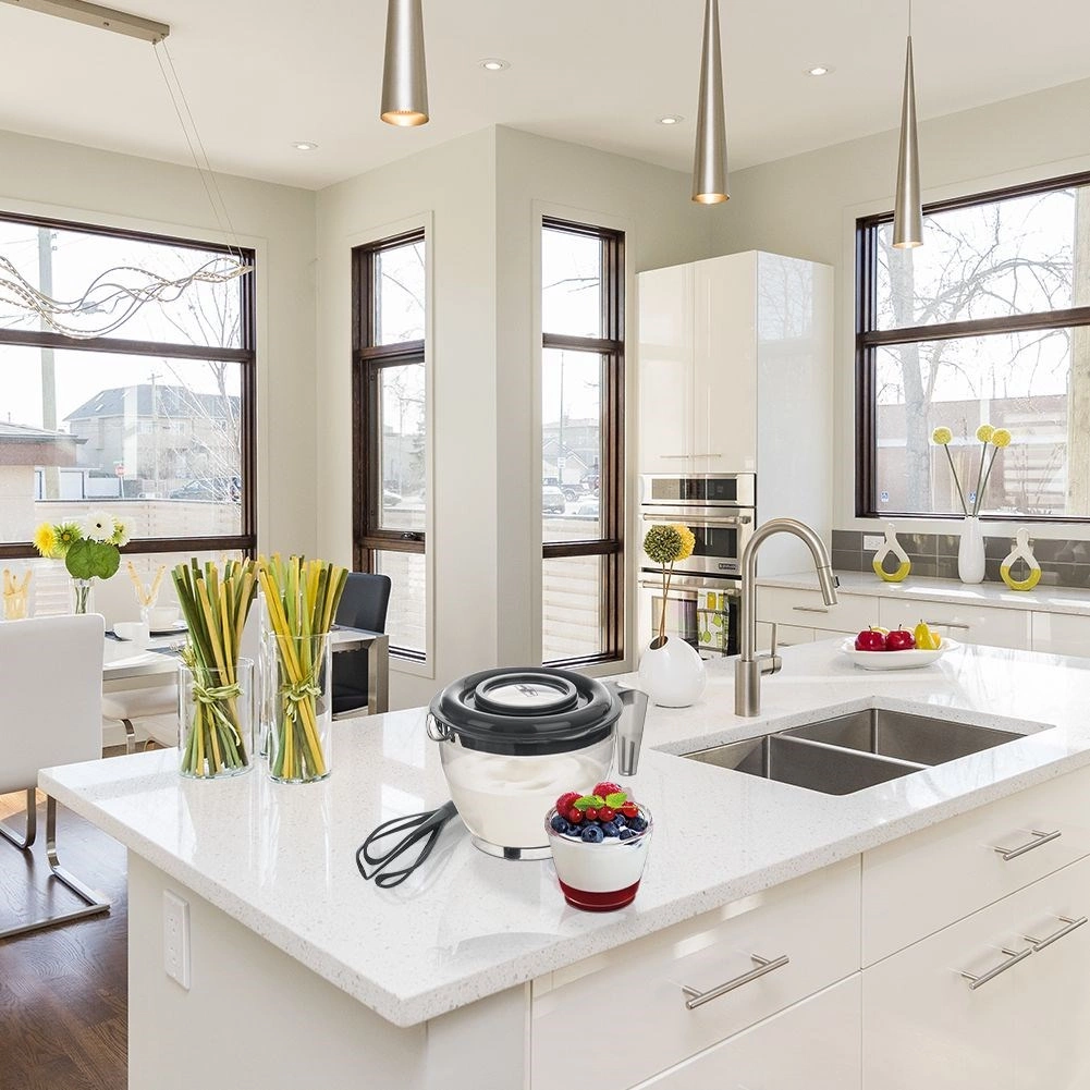 A kivehető középső fedőrész lehetővé teszi a kézi mixer habverőinek behelyezését, miközben megakadályozza az alapanyagok szétfröccsenését a konyhában.