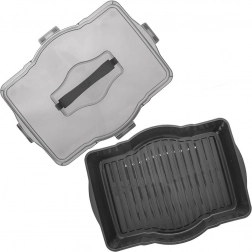 A 40,3 × 32 × 6 cm-es belső méretek elférnek egy tepsi süteménnyel, szendvicstállal vagy válogatott sajtokkal és felvágottakkal.