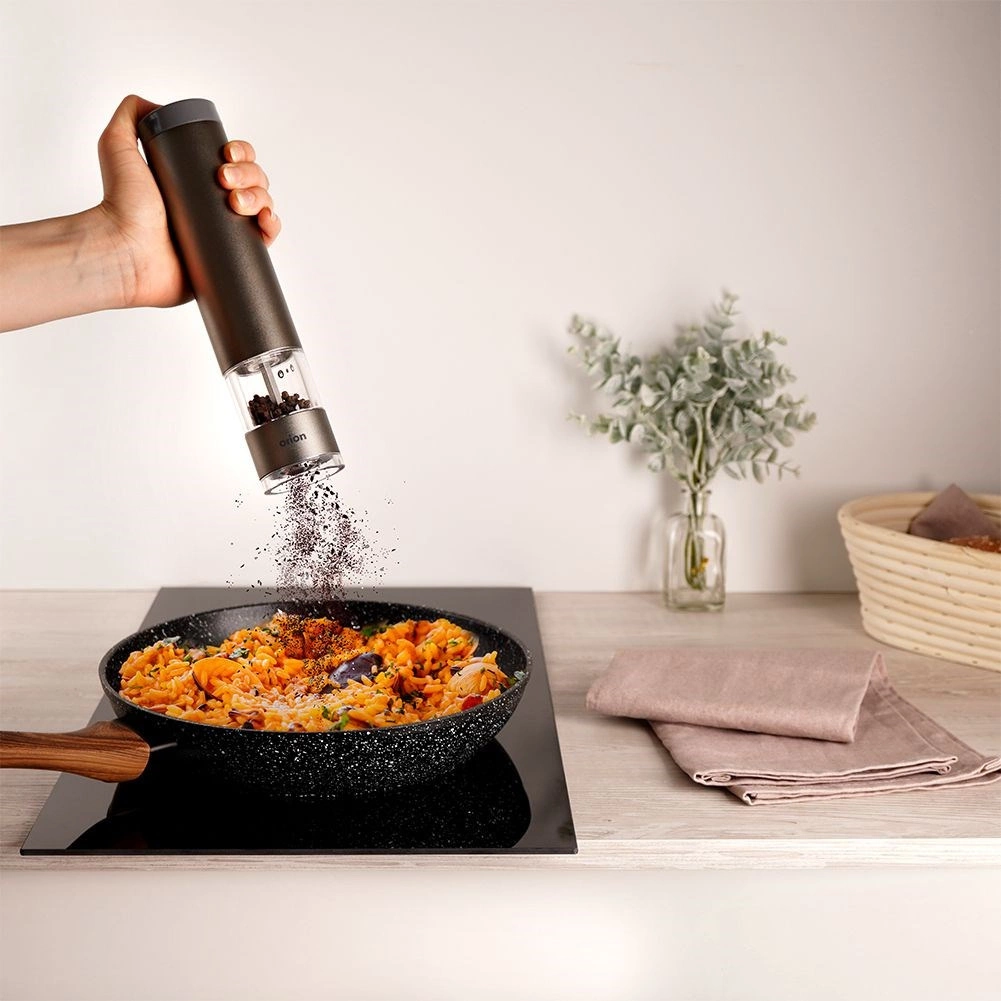 A 22,5 cm magas, karcsú, minőségi alumíniumból készült daráló modern megjelenésével és tartós kivitelével tűnik ki. A kerámia mechanizmus a keményebb szemekkel is megbirkózik, és egyenletes őrlést biztosít a friss fűszerek aromájának teljes felszabadításához.
