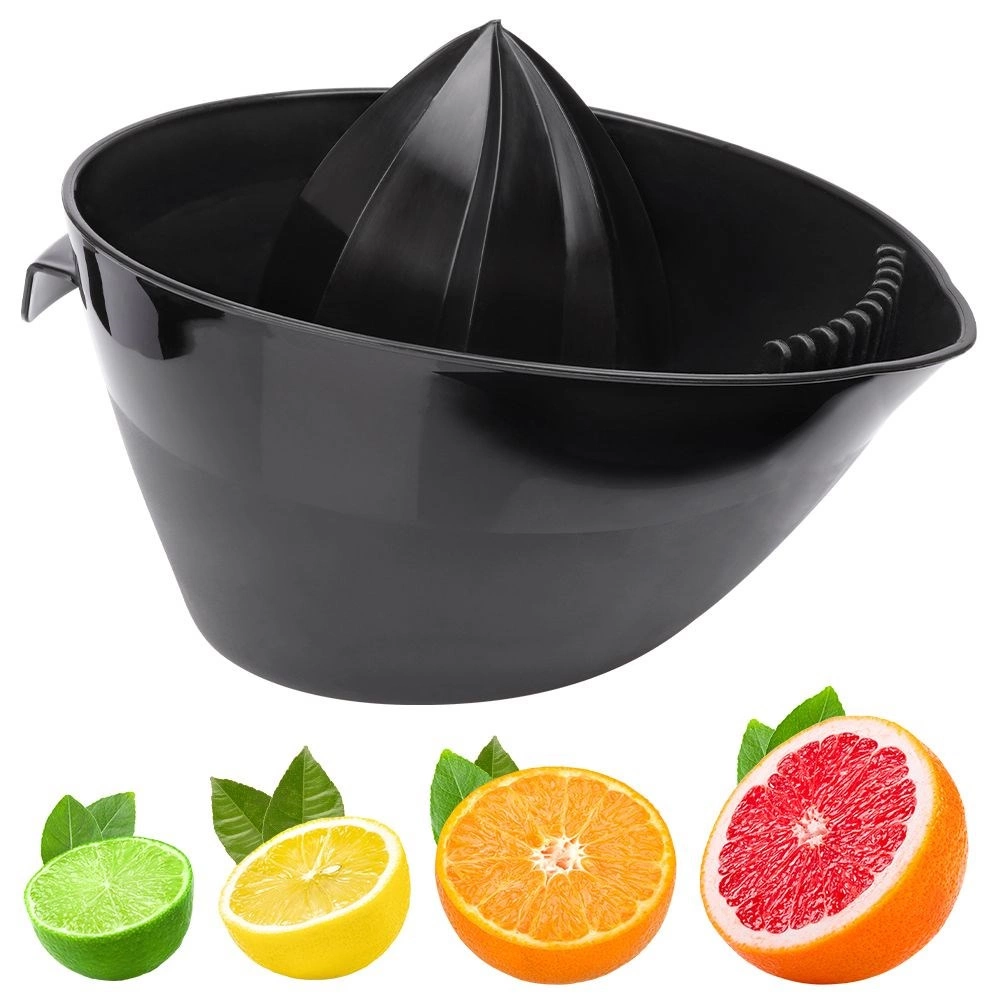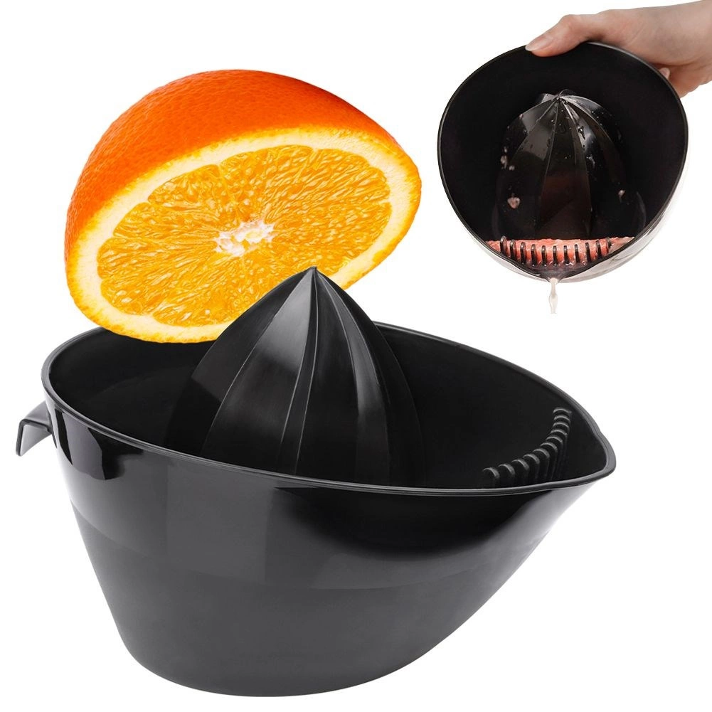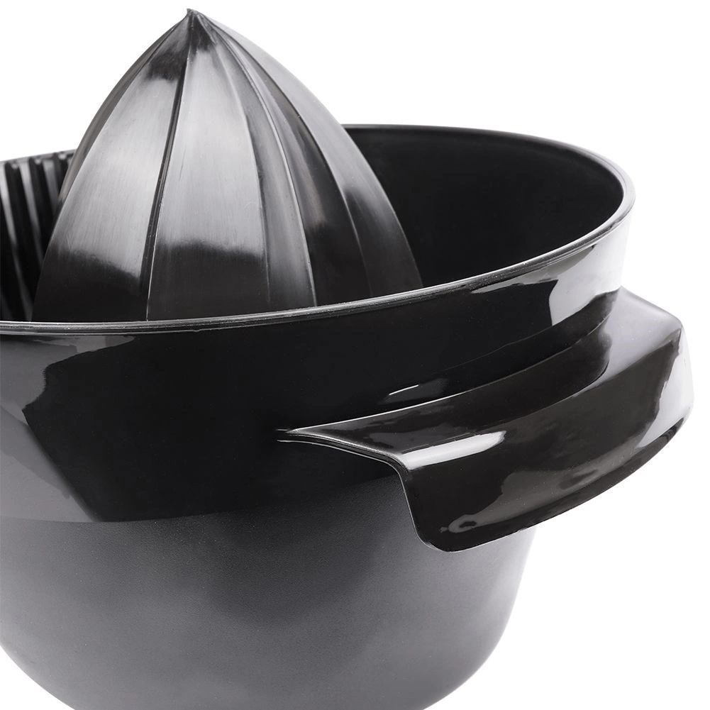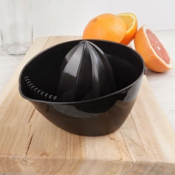 Praktikus kézi citrusprés elegáns fekete színben a friss narancs-, grapefruit-, citrom- és lime-lé egyszerű elkészítéséhez. A beépített szűrőnek, a praktikus kiöntőnek és a kényelmes fülnek köszönhetően tiszta, mag- és rostmentes levet kap. Tartós, minőségi műanyag kivitel, könnyű tisztítás és mosogatógépben mosható kialakítás – ideális mindennapi segítőtárs.