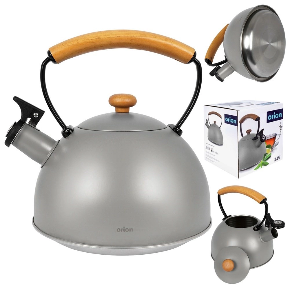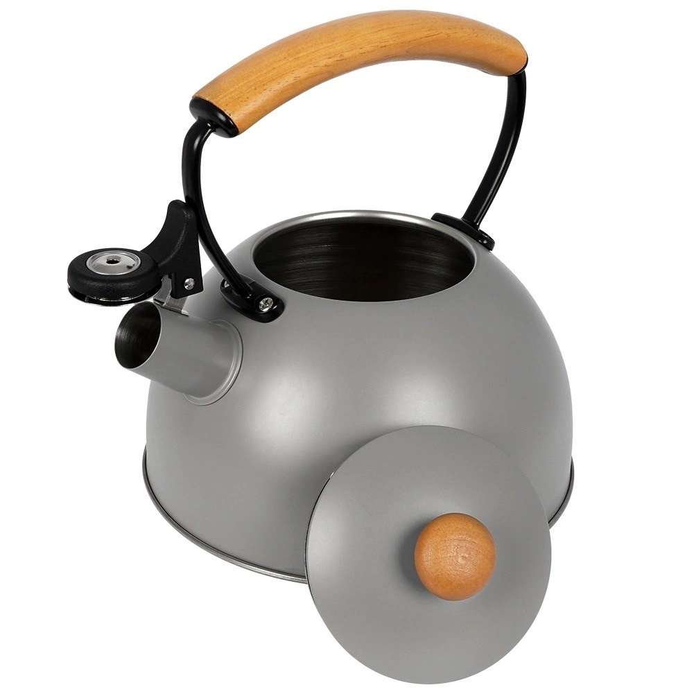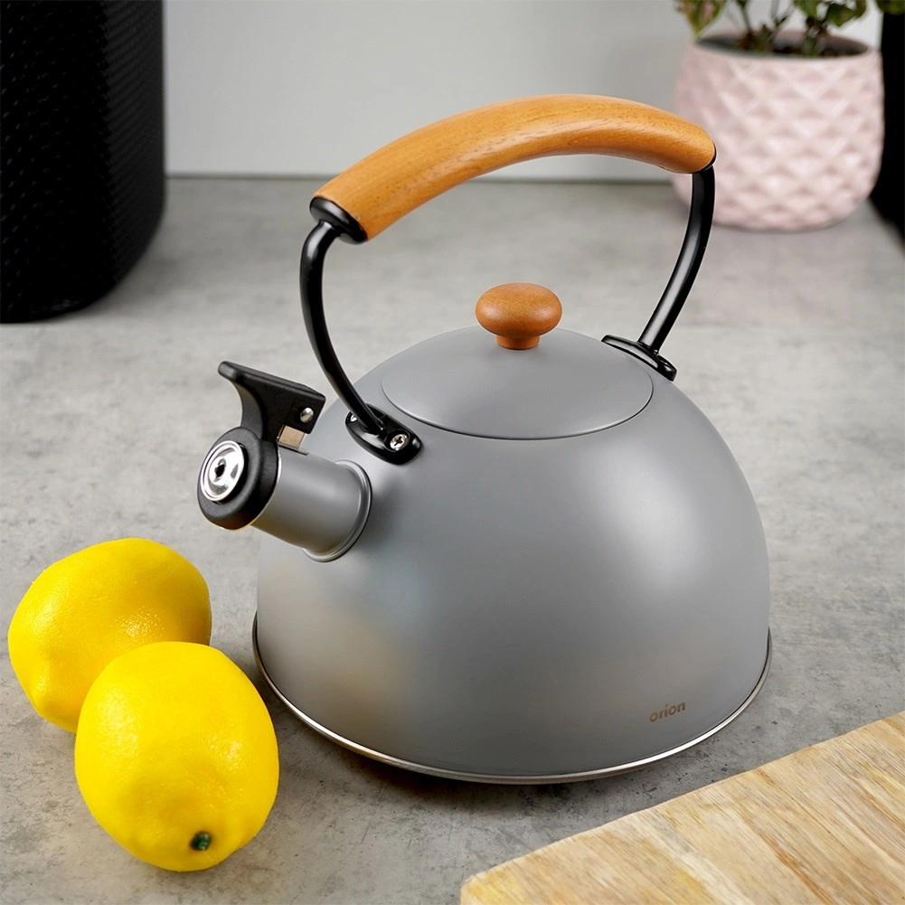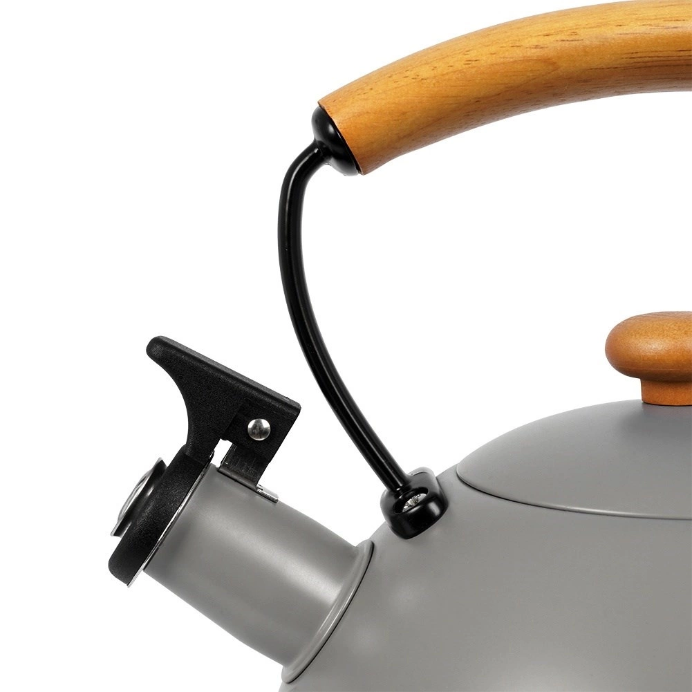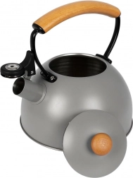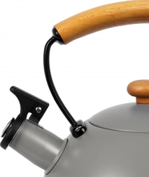 Luxus rozsdamentes acél vízforraló szürke kivitelben, kaucsukfa kiegészítőkkel, ideális a víz gyors felforralásához kávéhoz, teához és gyógynövényekhez. A ergonomikus fa fogantyúnak és a lehajtható sípnak köszönhetően a kezelés biztonságos és kényelmes. A vízforraló energiahatékony, a rozsdamentes acél pedig nem befolyásolja a víz ízét.