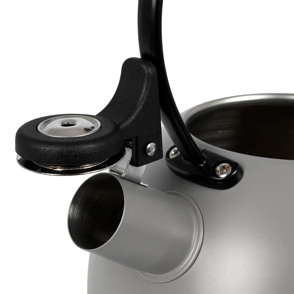 A síp megbízhatóan jelzi a forrást, a lehajtható mechanizmus pedig biztonságos és egyenletes kiöntést tesz lehetővé a csészébe.