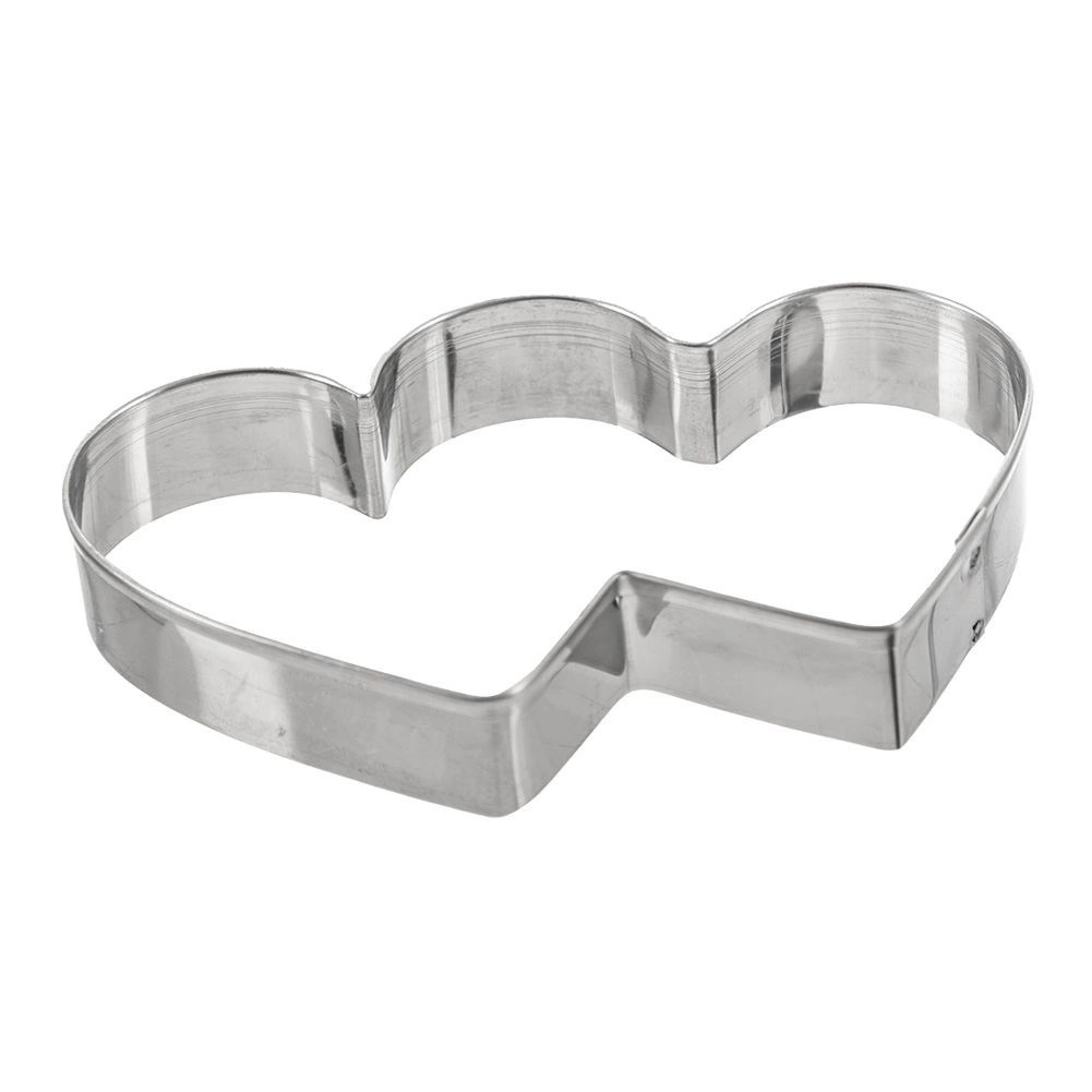 Praktikus cukrászati kiszúró dupla szív alakban, rozsdamentes acélból, mérete 9 × 5,5 × 1,5 cm. Ideális kekszekhez, mézeskalácshoz és fondant díszekhez. Tartós, sokoldalú, és mosogatógépben mosható.