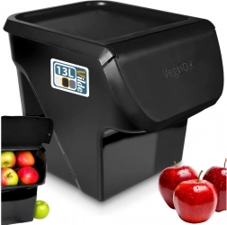 Praktikus, 13 l űrtartalmú konyhai doboz gyümölcs és zöldség tárolására elülső felnyitható fedéllel. Masszív műanyagának köszönhetően strapabíró, könnyen tisztítható, és élelmiszerrel érintkezhet. Egymásra rakható, szekrénybe vagy a munkalapra is helyezhető, valamint használható fagyasztóban −25 °C-ig és mosogatógépben is.