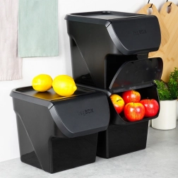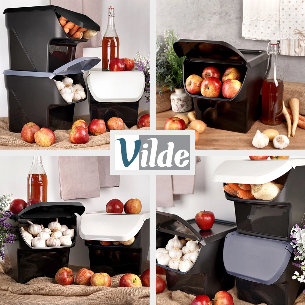 Tartsa a konyhát rendezettnek, az alapanyagokat pedig tovább frissen. A 34 × 26 × 27,5 cm méretű dobozban elfér a hagyma, burgonya, fokhagyma és gyümölcs is. Az elülső felnyitható fedél gyors utántöltést és kivételt tesz lehetővé anélkül, hogy az egész fedelet le kellene venni, szükség esetén pedig teljesen eltávolítható.