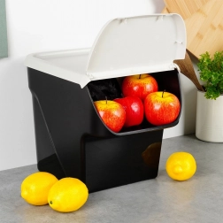 Tartsa a konyhát és a kamrát tökéletesen rendezett állapotban. A strapabíró tárolódoboz felnyitható előlapi fedéllel megkönnyíti a tartalom gyors feltöltését és kivételét anélkül, hogy a teljes fedelet le kellene venni. Az időtálló fekete tartály és a világosszürke fedél kombinációja bármelyik enteriőrbe illik.