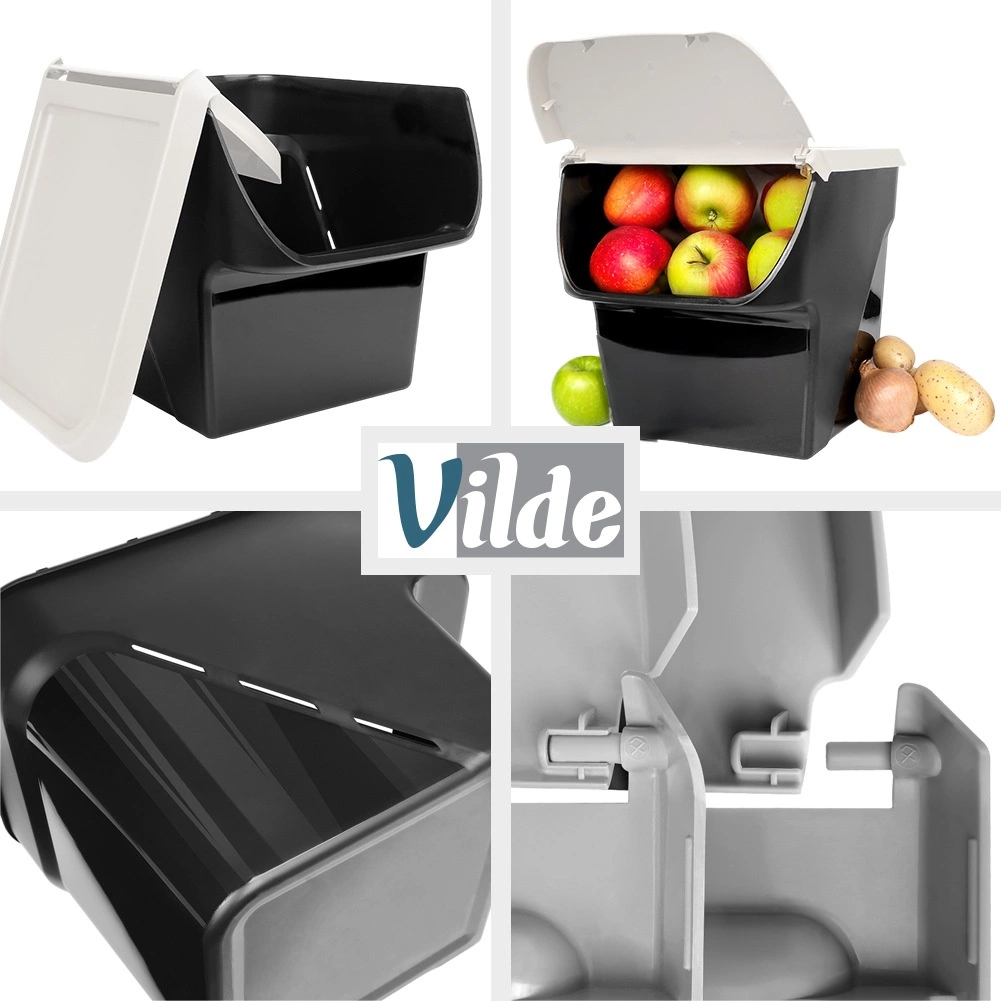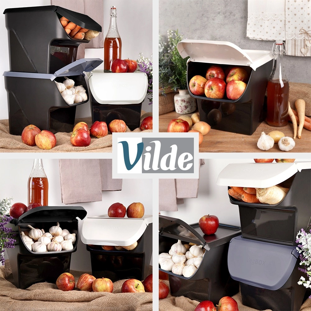 A moduláris forma lehetővé teszi több doboz biztonságos egymásra helyezését, így a konyha vagy a kamra tökéletesen rendezett marad.