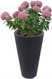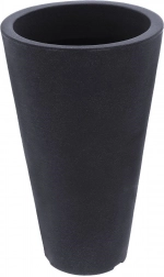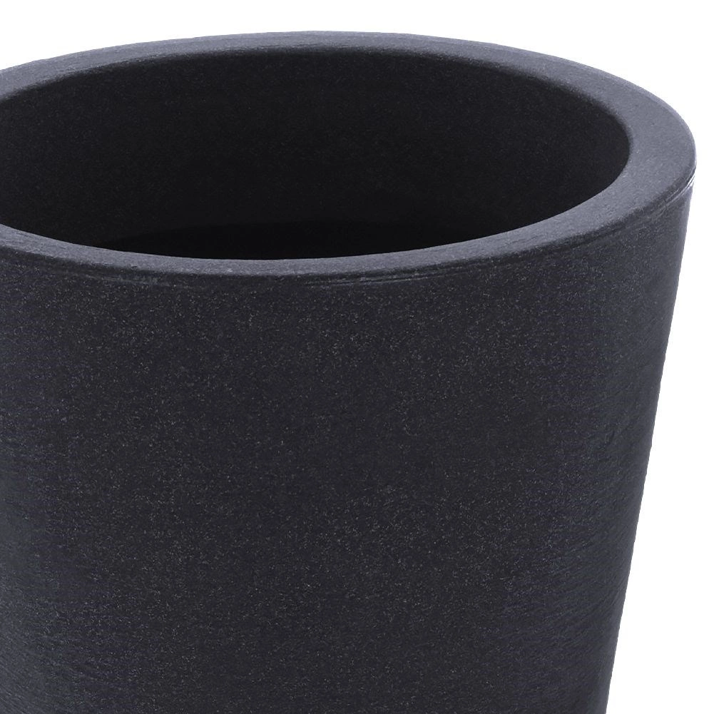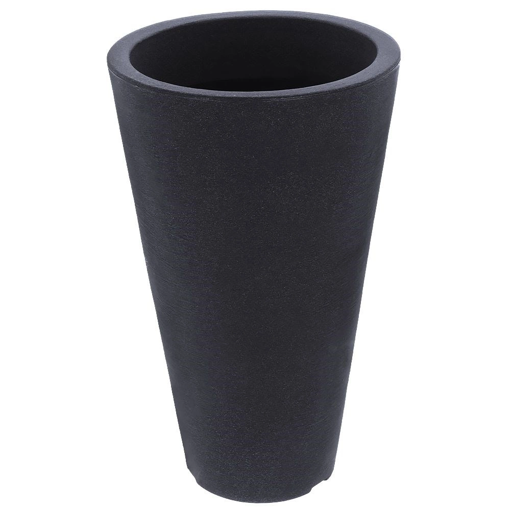 Stílusos kültéri virágcserép antracit színben, 45 cm magassággal és 28 cm felső átmérővel, ideális kertbe, teraszra és erkélyre. A könnyű, mégis rendkívül tartós műanyag, amely kőhatású, valamint a modern kúpos forma kiváló stabilitást és egyszerű kezelhetőséget kínál. Időjárásálló, és kiválóan alkalmas virágok, zöld növények és fűszernövények ültetésére.