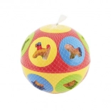 Szórakoztató műanyag bedobó játék labda formában, 13 cm átmérővel, amely fejleszti a finommotorikát, a mozgáskoordinációt és a forma-felismerést. 6 állatfigurás formát tartalmaz, és ideális 12 hónapos kortól. Elérhető két színváltozatban.