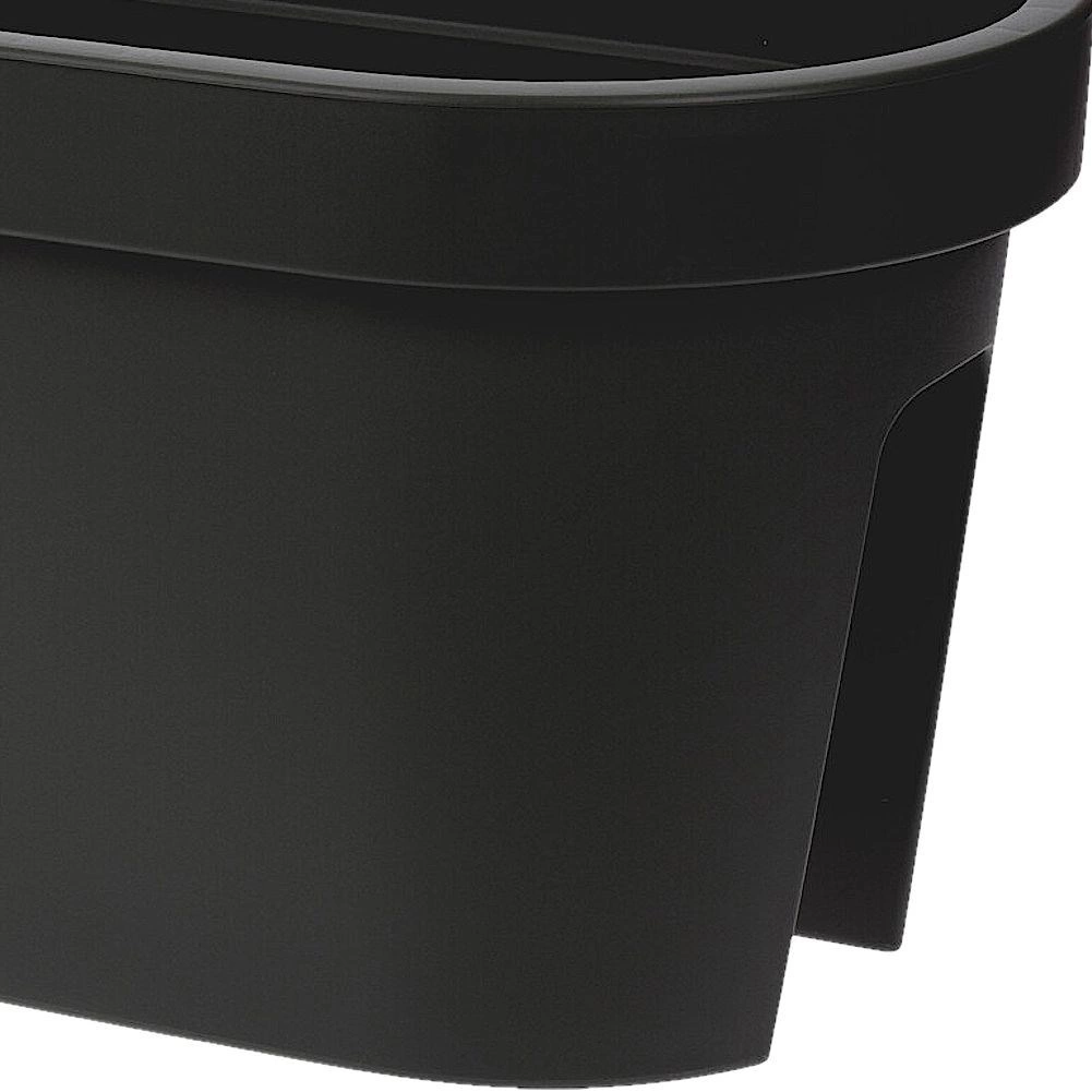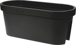 Praktikus, 59 cm hosszú, elegáns fekete színű függesztett láda korlátra, ideális erkélyre és teraszra. Az integrált rögzítésnek köszönhetően könnyen felhelyezhető legfeljebb 6 cm széles korlátokra. Könnyű, mégis nagyon tartós anyagból készült, 90%-ban újrahasznosított műanyagból, és teljes mértékben újrahasznosítható. Kültéri használatra alkalmas – ellenáll az esőnek, szélnek és az UV-sugárzásnak, valamint helytakarékos a kis erkélyeken. Remek megoldás virágokhoz, fűszernövényekhez és díszfüvekhez.