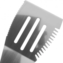 A fogazott oldalak és az éles él lehetővé teszik az adagok szeletelését vagy levágását közvetlenül grillezés közben – további eszközök nélkül.