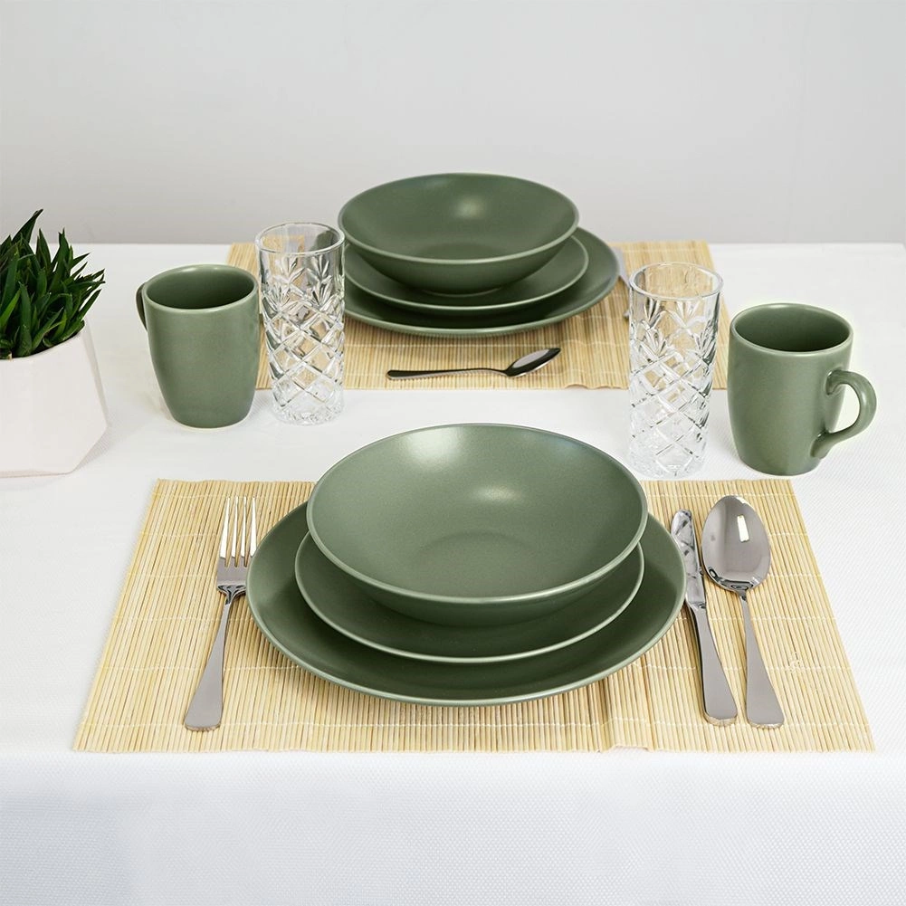 - Elegáns megjelenés: matt zöld, amely sokféle terítési stílushoz illik.