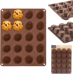 Ez a barna, téglalap alakú szilikon forma egyszerre 20 tökéletesen formázott mini muffint vagy cupcake-et készít. A tapadásmentes felületnek köszönhetően a tészta nem ég le, a kész sütemények könnyen kivehetők, zsír kikenése vagy lisztezés nélkül.