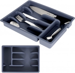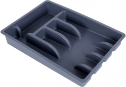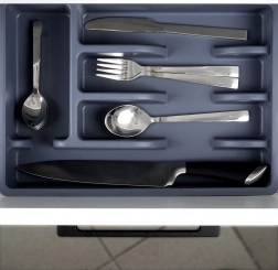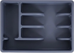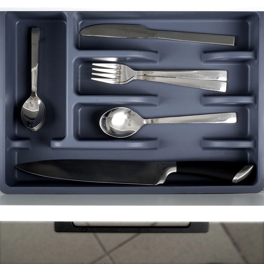 A rendszerező minőségi, tartós műanyagból készült modern szürke színben, így könnyen tisztán tartható és hosszú élettartamú. A belső válaszfalak megakadályozzák az evőeszközök elcsúszását a fiók nyitásakor, ami növeli a kényelmet a mindennapi használat során.