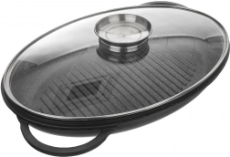- Ovális 3 az 1-ben tepsikészlet (mély tepsi, grillserpenyő/fedő, üvegfedő)