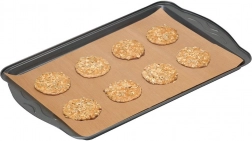 Tapadásmentes teflon sütőfólia 40 × 33 cm méretben, többszöri használatra, idő- és pénzmegtakarítással. Könnyen méretre vágható, víz- és olajálló, gáz- és elektromos sütőkhöz is használható egészen 230 °C-ig. Ideális alternatíva sütőpapír helyett könnyű sütéshez leégés nélkül és gyors tisztításhoz.