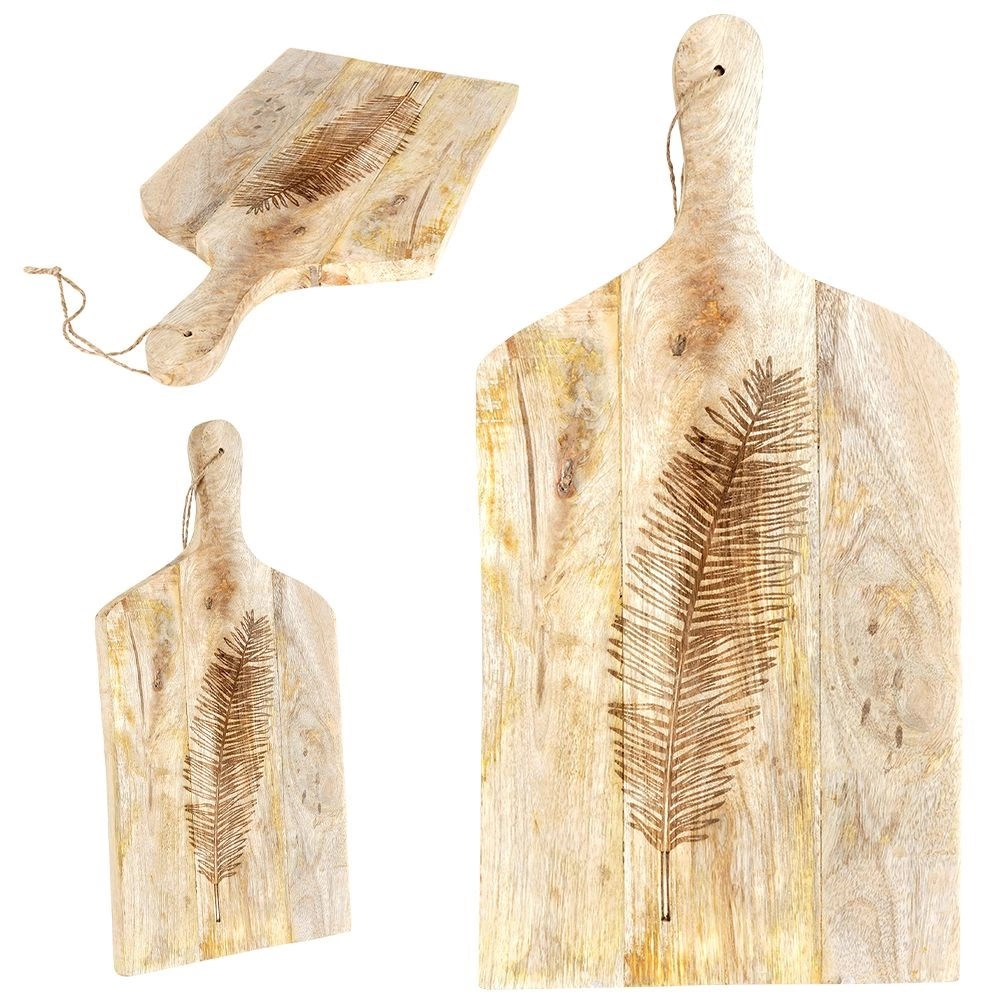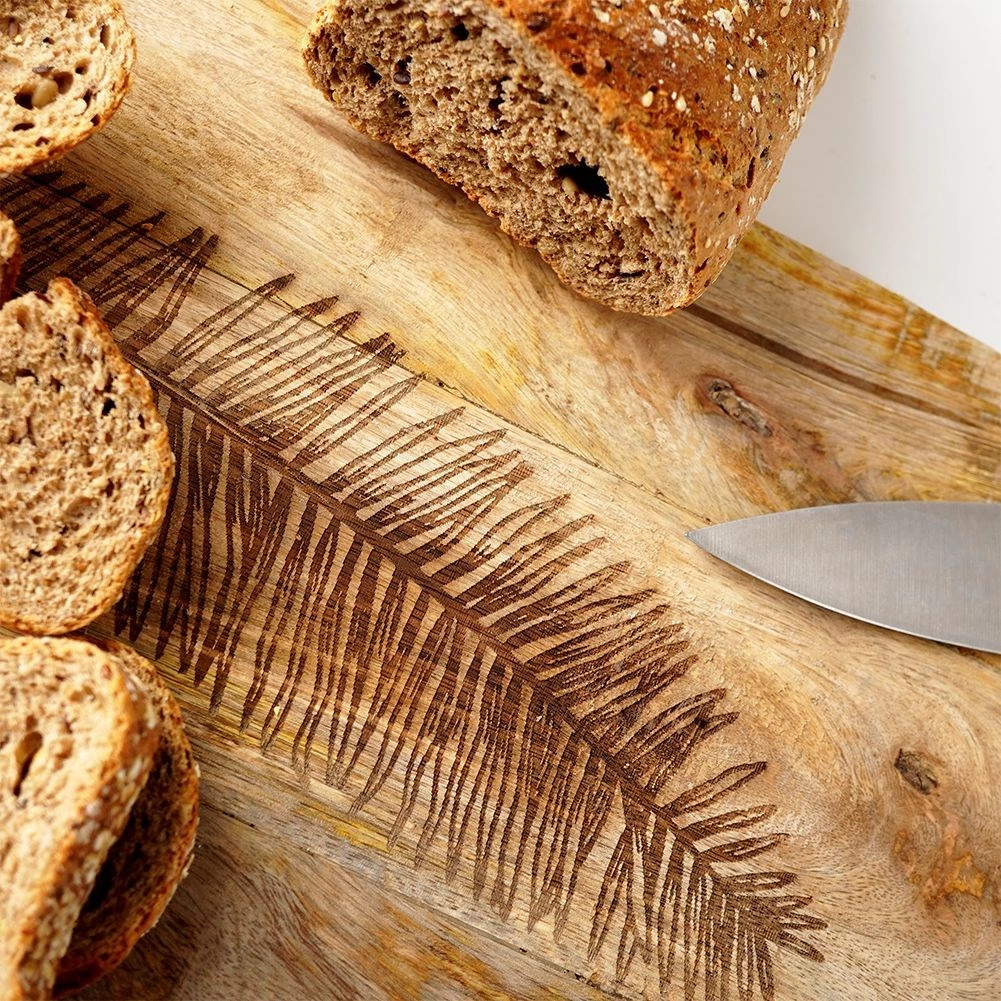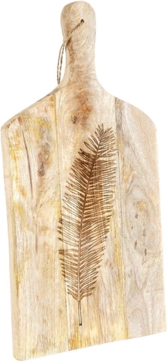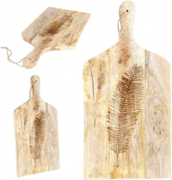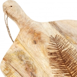 A dekoratív levél domborvéset dizájnelemmé emeli a deszkát. Nemcsak vágáshoz, hanem sajtok, pékáru vagy gyümölcs látványos tálalásához is használhatja.