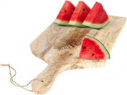 Nagylelkű méreteinek köszönhetően kényelmesen szeletelhet rajta húst, pékárut, zöldséget és gyümölcsöt, majd ugyanazon a deszkán szervírozhat sajtokat, felvágottakat vagy snackeket. A praktikus fogantyú nyílással és zsinórral megkönnyíti a felakasztást és a hordozást. A mangófa természeténél fogva ellenáll a nedvességnek, nem deformálódik, nem veszi át a szagokat és gyorsan szárad.