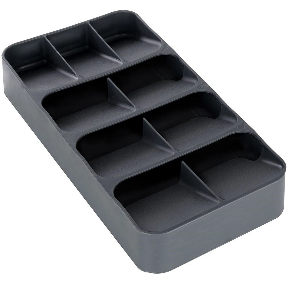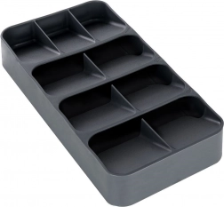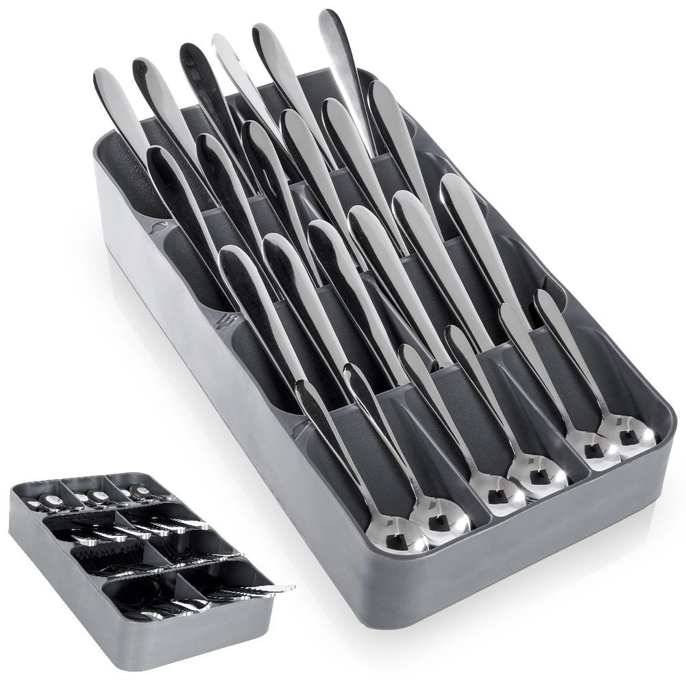 Tartson rendet a konyhában a kompakt Vilde evőeszközrendezővel. Okos, többszintű kialakításának és akár 9 rekeszének köszönhetően maximálisan helytakarékos, áttekinthetően rendszerezi a villákat, kanalakat, késeket és kiskanalakat, miközben biztonságos késtartást is biztosít. Tartós műanyagból készült elegáns szürke színben, és úgy lett kialakítva, hogy a legtöbb konyhai fiókba illeszkedjen.