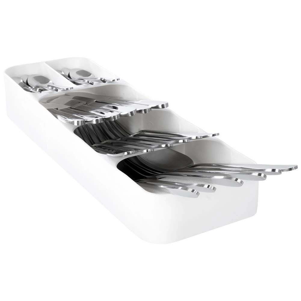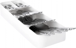 Rendezze okosan és stílusosan az evőeszközeit. Ez a keskeny, mégis rendkívül nagy kapacitású fiókrendező fehér színben mindennek külön helyet ad, javítja az áttekinthetőséget és felgyorsítja a mindennapi tálalást. A tartós műanyagnak köszönhetően könnyen tisztítható és hosszú élettartamú.