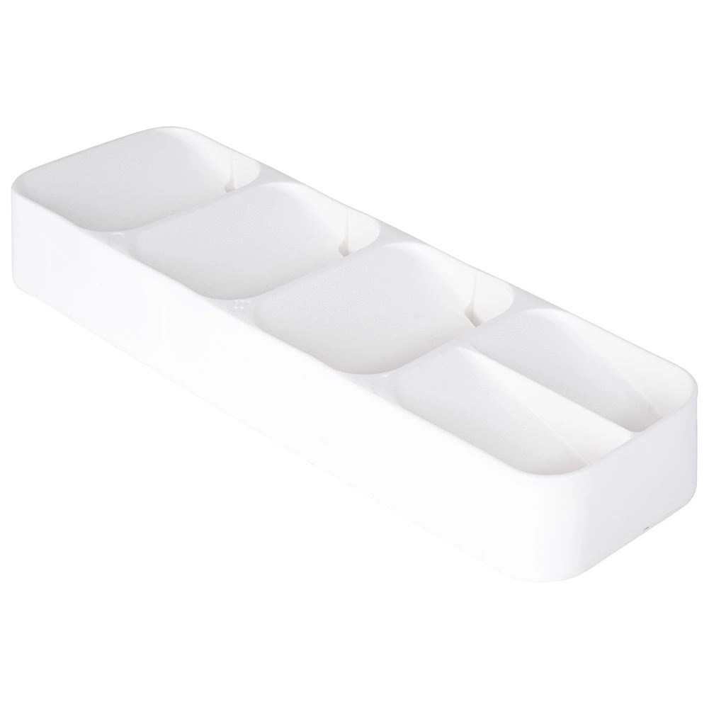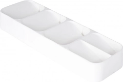 Praktikus, fehér fiókba való evőeszközrendező 39 × 11,5 × 5,5 cm méretben, amely rendben és tisztán tartja a konyhát. Akár 5 rekesszel a kanalaknak, villáknak, késeknek és kiskanálaknak, tartós, helytakarékos, és univerzális méretének köszönhetően a legtöbb fiókba illik.