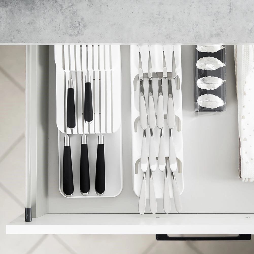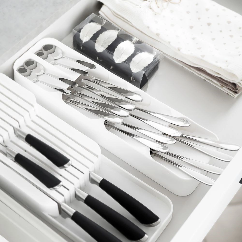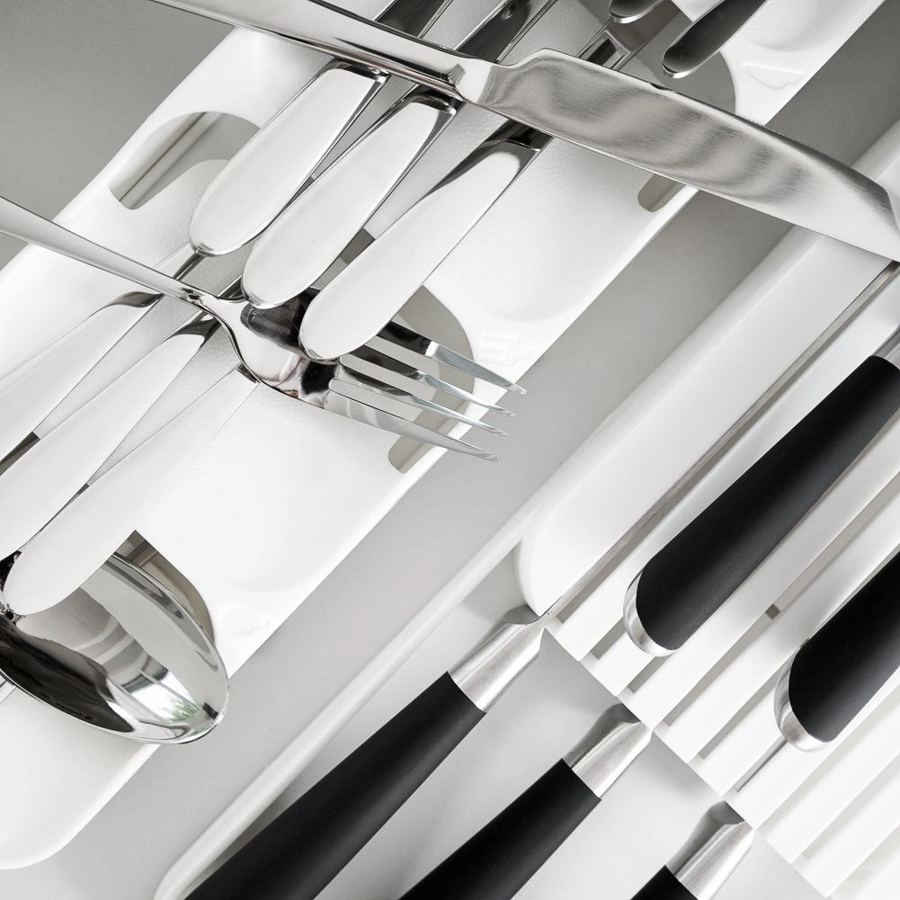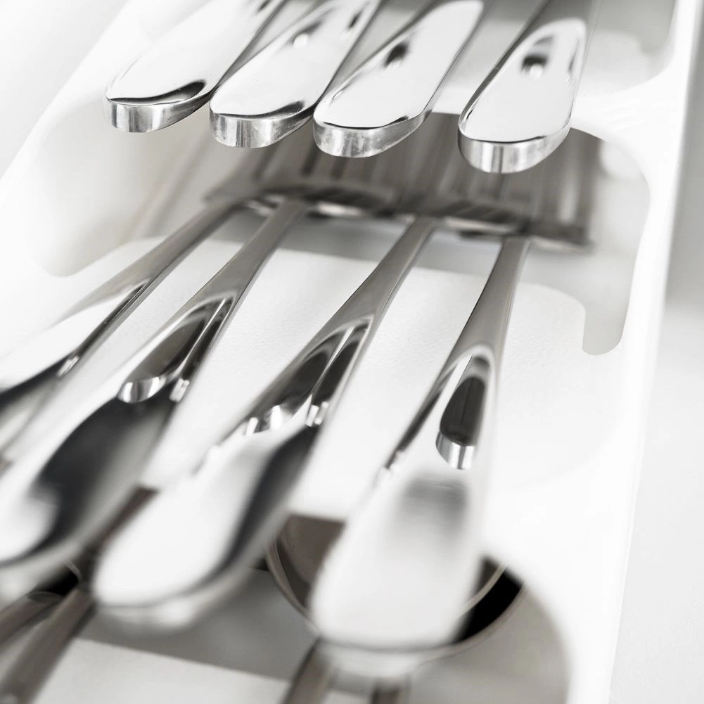 Külön szekciók a kanalaknak, villáknak, késeknek és kiskanálaknak, hogy a fiók tökéletesen rendszerezett maradjon.
