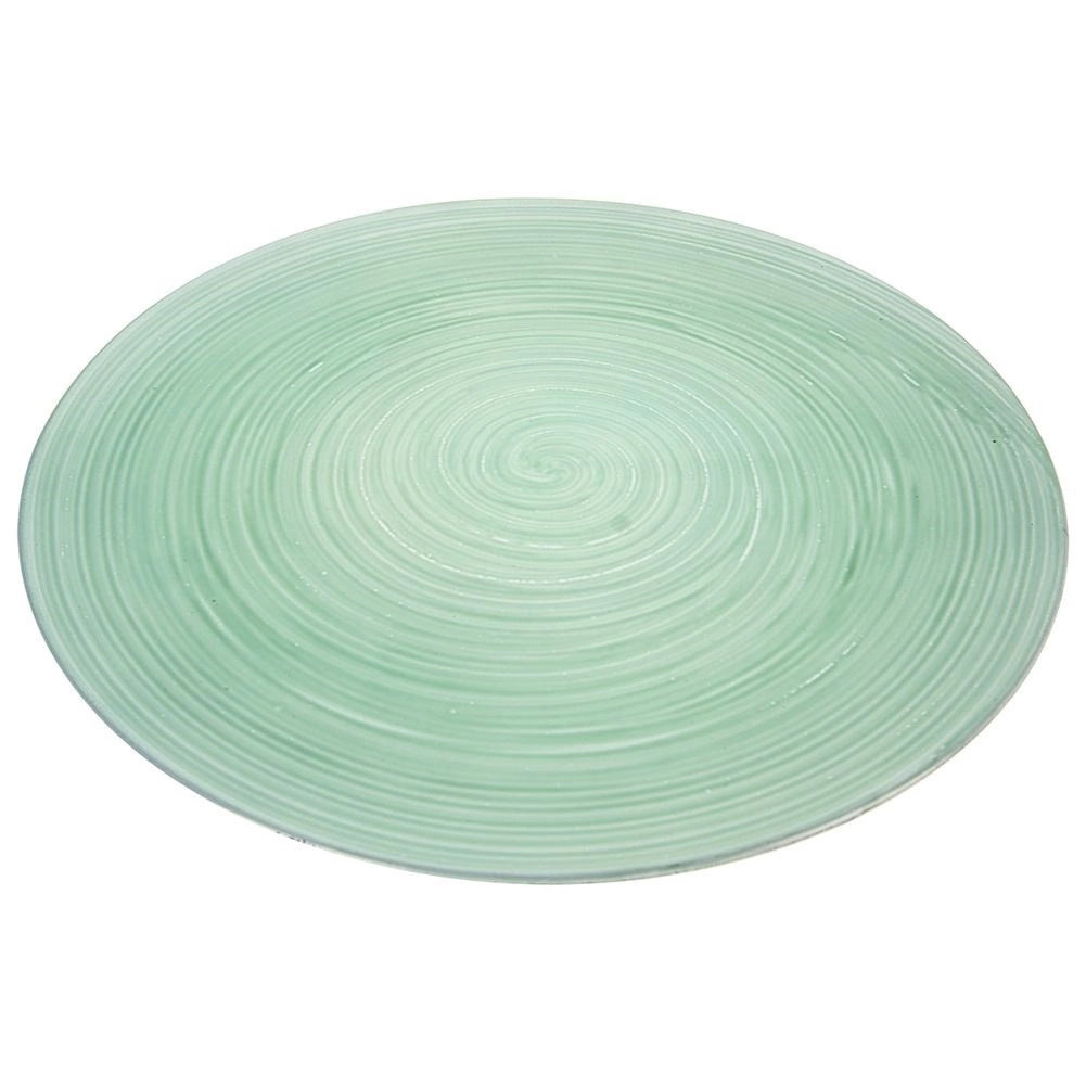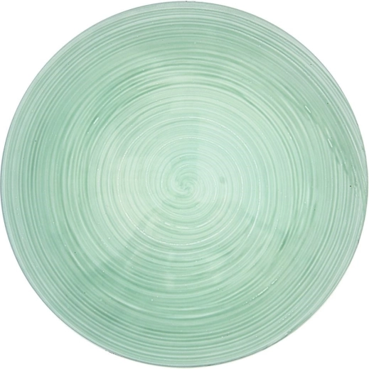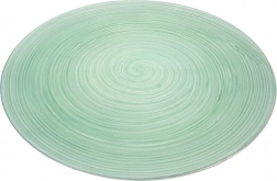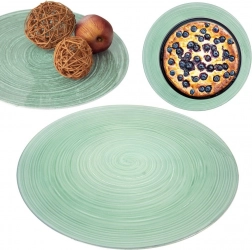 A mentazöld árnyalat és a körkörös textúra kiemeli a tányérok megjelenését, friss, elegáns hangsúlyt adva a terítésnek.