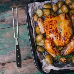Két extra hosszú rozsdamentes acél tüske stabilan tartja a sültet szeletelés közben, és megkönnyíti a forgatást és a tálalást csúszás nélkül.