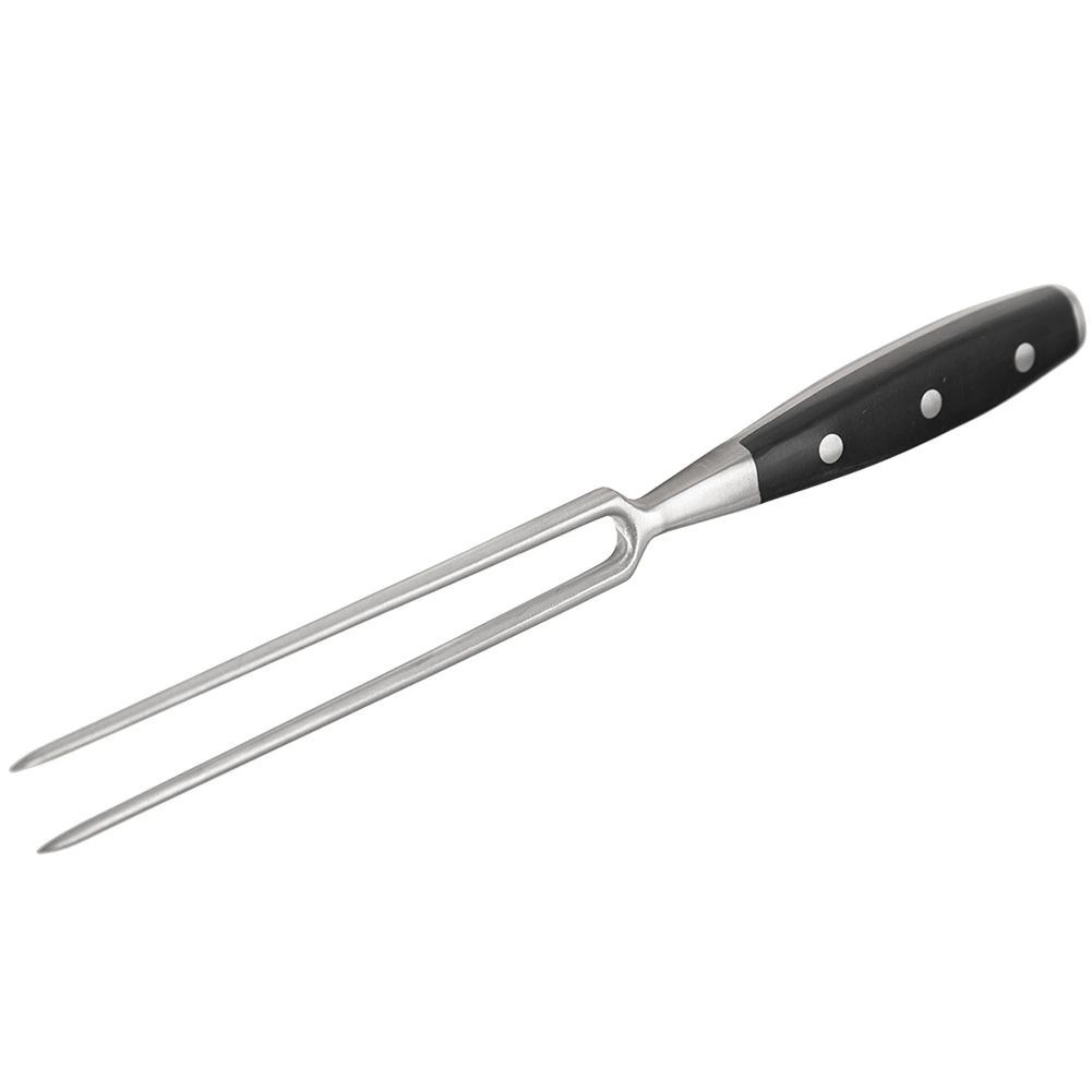 A masszív, rozsdamentes acél húsvilla precíz kontrollt kínál sült húsok, steakek és szárnyasok szeletelésekor. A hosszú, éles tüskék biztonságosan rögzítik a húsdarabokat, így kényelmes a porciózás és a tálalás. A fekete, tartós ABS nem csúszik a kézben, a hárompontos szegecselés pedig maximális stabilitást ad.