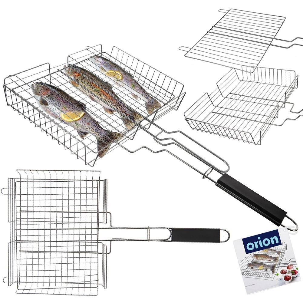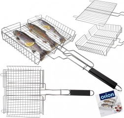 A kétoldali zárás és a masszív rács egyben tartja a halat, húst és zöldséget. Elég az egész kosarat megfordítani, és az étel egyenletesen átsül.