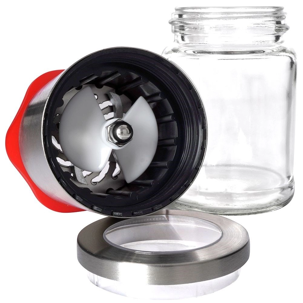Ez a kézi daráló az intenzív ízek kedvelőinek készült. A rozsdamentes acél mechanizmus finoman szeleteli a szárított chilipaprikát, fűszereket és gyógynövényeket, így megőrzi azok intenzív aromáját és ízét nem kívánt zúzás nélkül. Az üveg tartály megkönnyíti a mennyiség és a tartalom ellenőrzését.