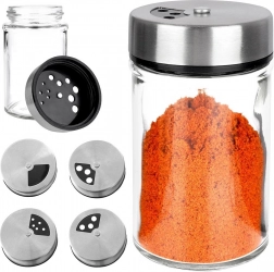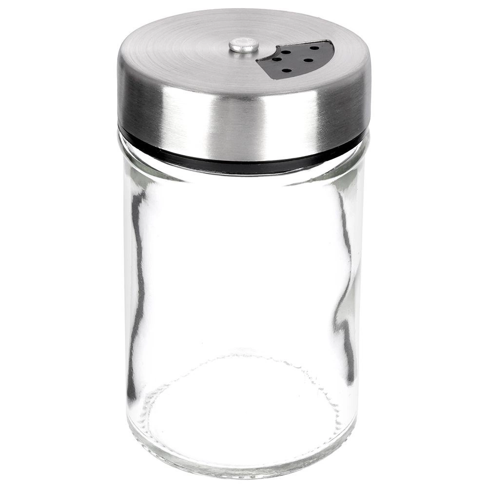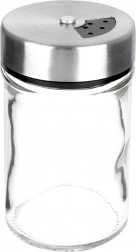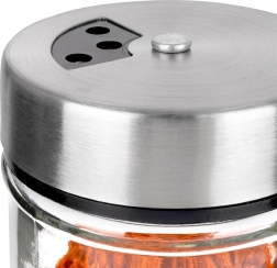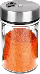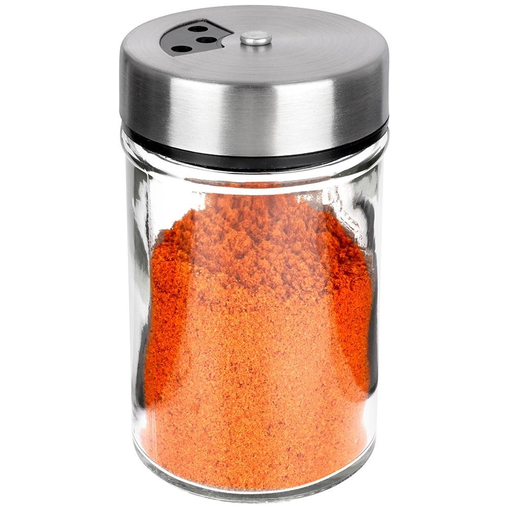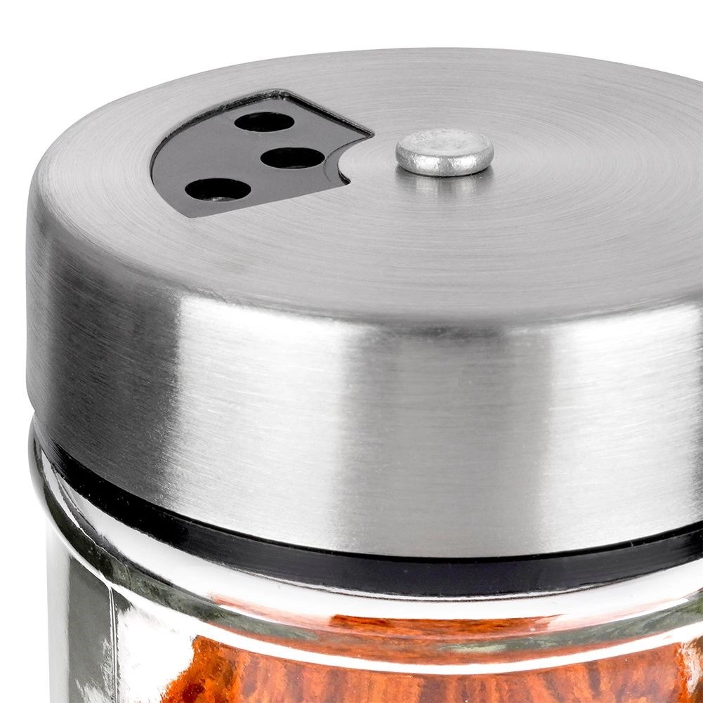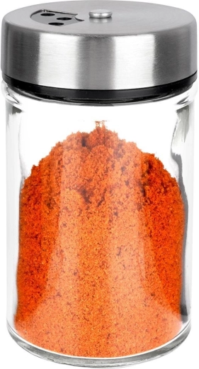 Elegáns, átlátszó üveg fűszertartó rozsdamentes acél fedéllel és műanyag adagolóval, ideális a mindennapi konyhai használatra. A kétféle nyílásméretnek köszönhetően könnyedén beállítható a finom vagy durvább szórás, így mindig pontosan annyit adagol, amennyire szükség van. A zárható mechanizmus tovább illatosan és frissen tartja a fűszereket.
