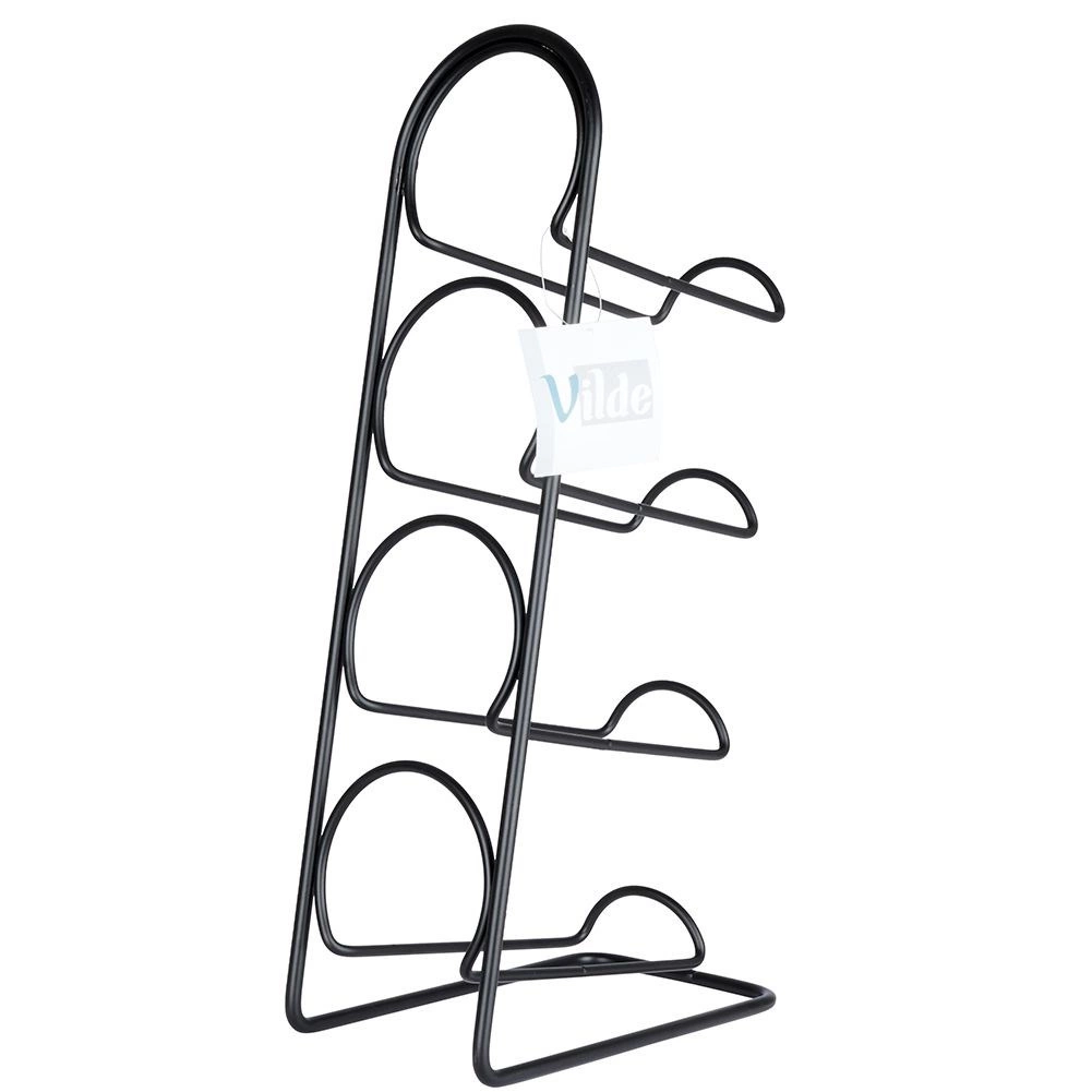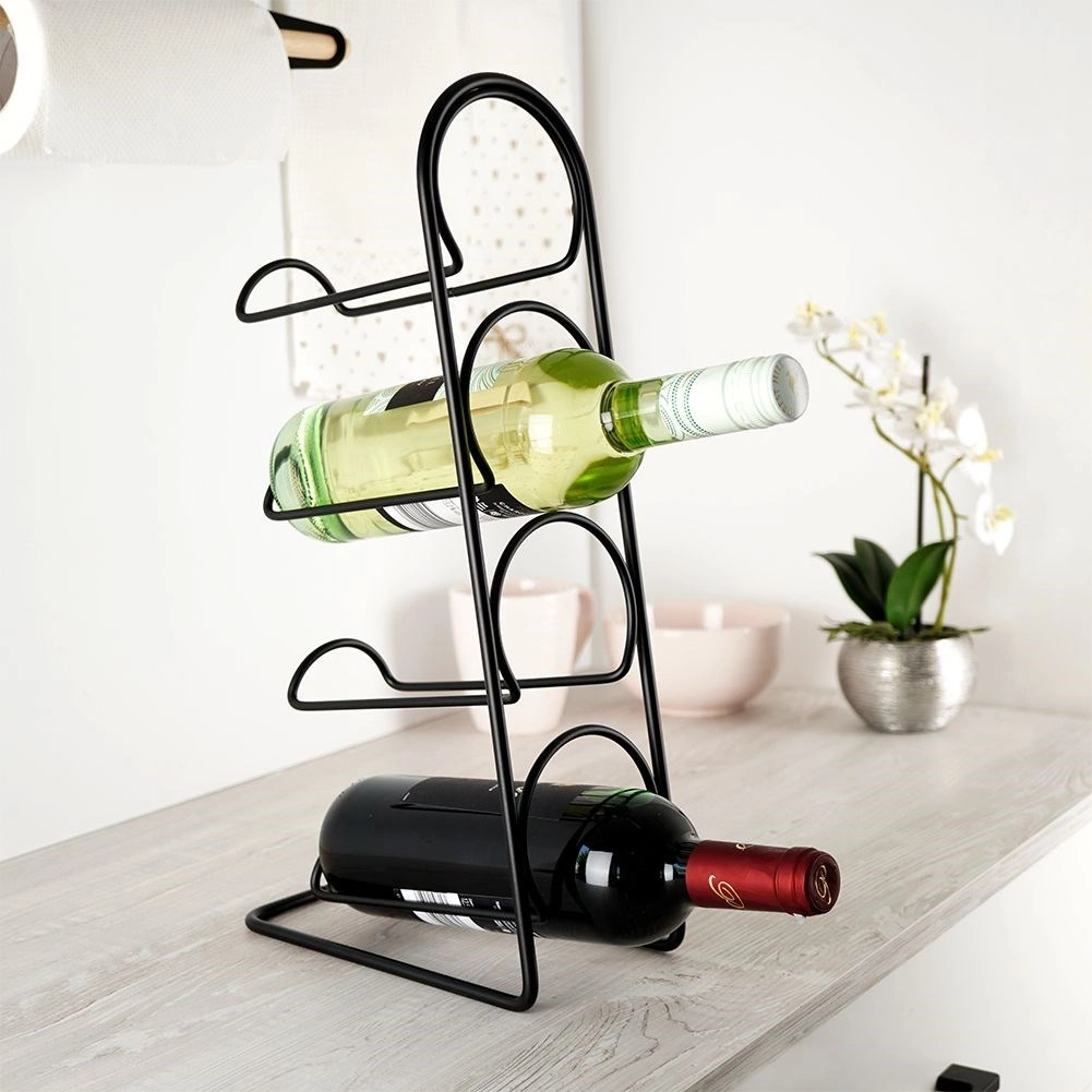 Elegáns, 4 palack tárolására alkalmas fekete fém bortartó, amely stílust és rendszert visz az otthonába. A stabil kialakítás biztonságosan tartja a borokat az ideális vízszintes helyzetben, hogy a parafa nedves maradjon. Kiválóan illik konyhába és nappaliba, elhelyezhető padlón vagy munkalapon, és remek ajándékötlet borkedvelőknek is.