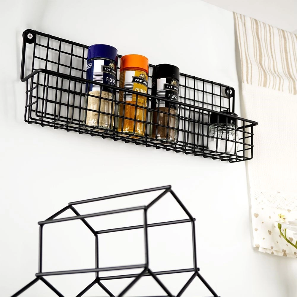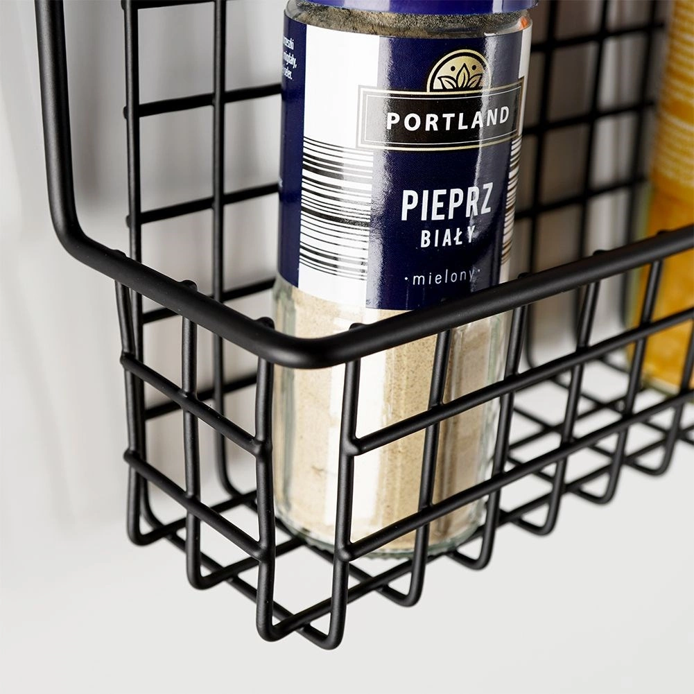 A strapabíró, fekete fém drótkosárral biztonságosan a helyén tartja a fűszertartókat és a kis üvegcséket, megkönnyítve az átlátható tárolást.