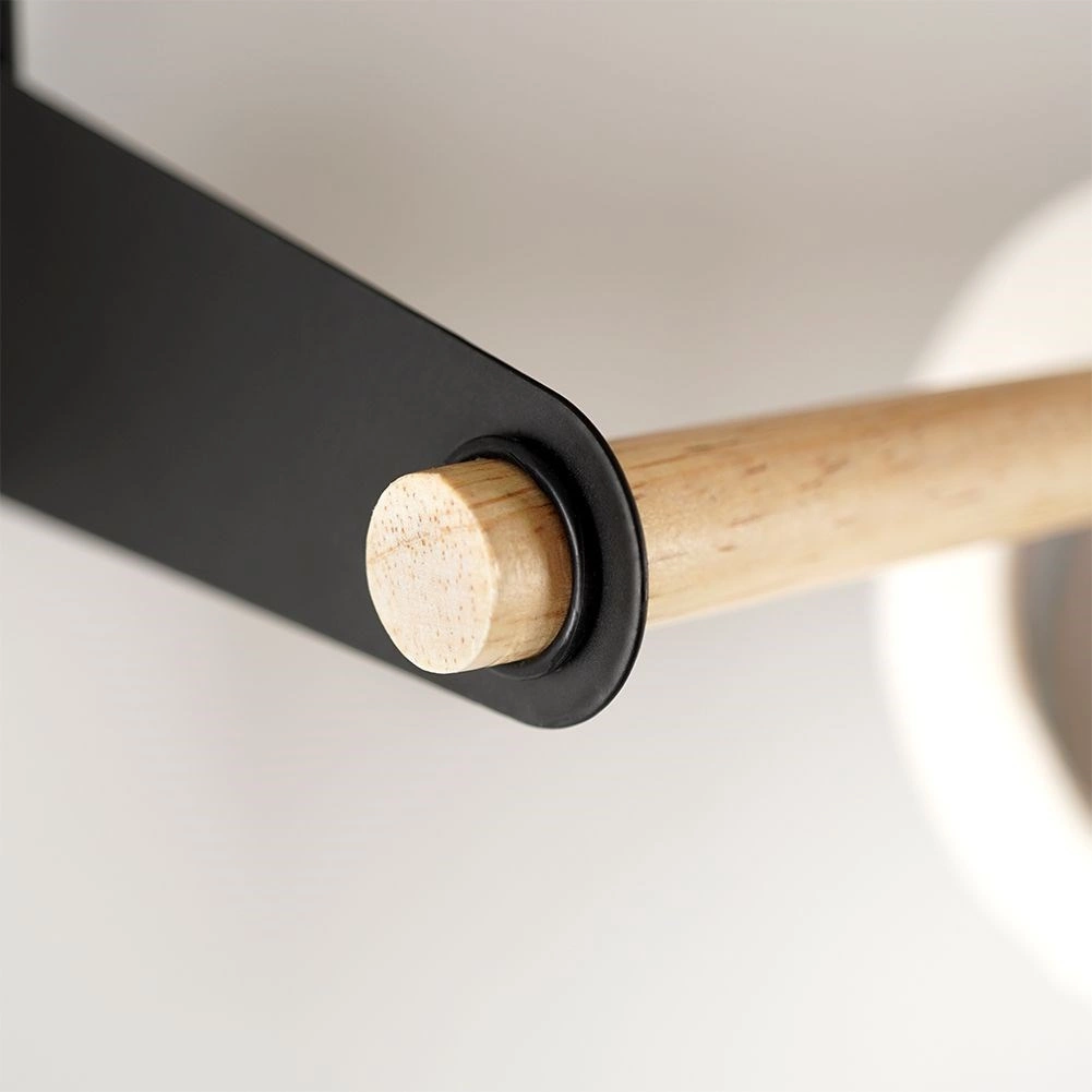 A porszórt fekete fém stabil, rozsdamentes és könnyen tisztítható. A bambusz meleg, természetes hangsúlyt ad.