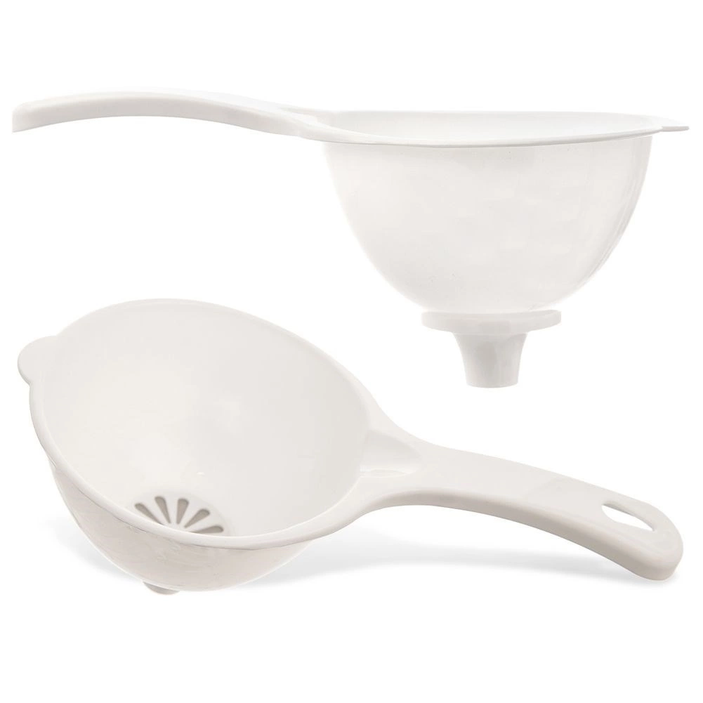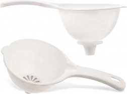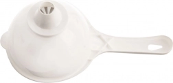 Univerzális, fehér tölcsér szűrővel, amely megkönnyíti italok és finom alapanyagok áttöltését kiömlés nélkül. Az integrált szűrő felfogja a gyümölcsdarabokat, az üledéket és az apró részecskéket, így az üvegbe vagy pohárba csak tiszta folyadék áramlik. A masszív fogantyúnak köszönhetően öntés közben mindig stabil és biztos fogást nyújt.