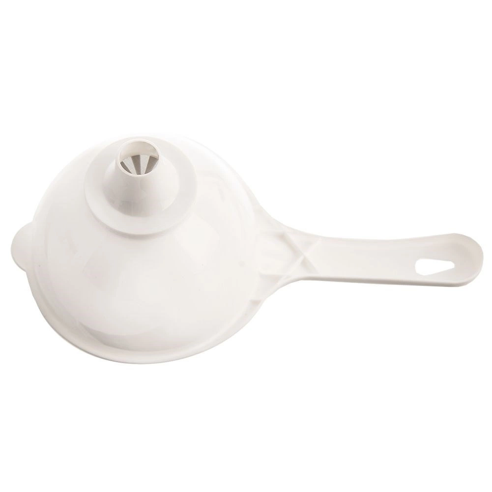 Minőségi műanyagból készül, könnyű és tartós, ideális a mindennapi konyhai használatra. A 22 × 11,5 cm-es méret és az 1,5 cm átmérőjű kifolyó gyors és kontrollált folyadékáramlást biztosít keskenyebb nyakú edényekbe is.