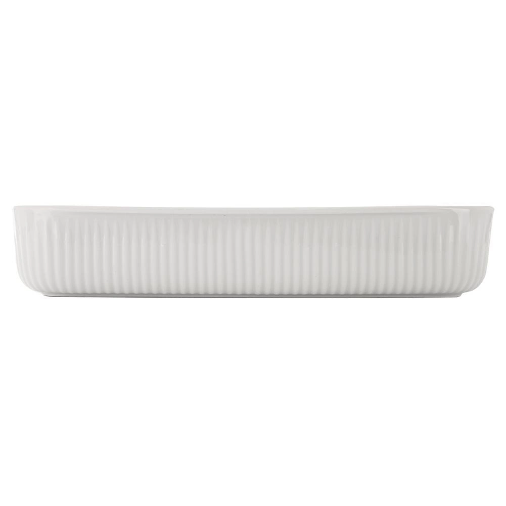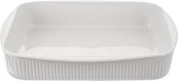 Praktikus, fehér porcelán sütőtál 2,2 l űrtartalommal és 30,5 × 24,5 × 5,5 cm méretekkel, mindennapi sütéshez és tálaláshoz. Minőségi porcelánból készül a Karlovy Vary régió hagyományos porcelángyárából, használható sütőben, mikrohullámú sütőben, hűtőszekrényben és mosogatógépben is. Bordázott külső felület, simára mázolt belső az egyszerű kiborításhoz és tisztításhoz, valamint integrált oldalsó fogók a kényelmes hordozáshoz.