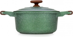 Stílusos OMEGA gránit lábas 24 cm átmérővel és 4,4 l űrtartalommal, tartós alumíniumból, ötrétegű, tapadásmentes gránit felületkezeléssel és indukciós betéttel az aljában. Gyors és egyenletes hőeloszlást kínál, karcálló, PFOA-mentes, és minden főzőlap-típushoz alkalmas, beleértve az indukciót is. Az ergonomikus, puha tapintású (soft touch) fogantyúk és a jól záródó fedő kényelmes és biztonságos használatot biztosítanak.