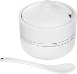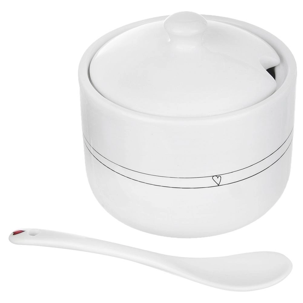 A finom fekete vonal és a kis szív egyedi megjelenést kölcsönöz a cukortartónak. A piros szívvel díszített kanál szépen harmonizál az edénnyel.