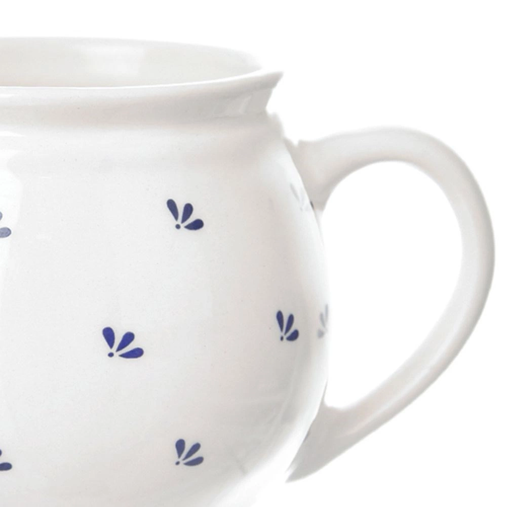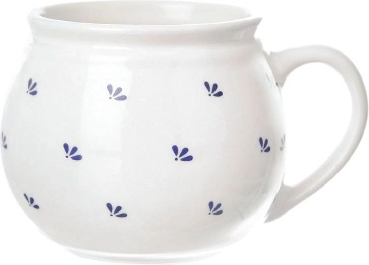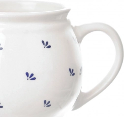 Stílusos bögre minőségi kerámiából, kék-fehér kivitelben, forró és hideg italokhoz egyaránt. Kompakt méretei (átmérő 8 cm, magasság 6,5 cm) kényelmes mindennapi használatot garantálnak otthon és irodában. A finom, pöttyös virágminta időtlen megjelenést kölcsönöz.