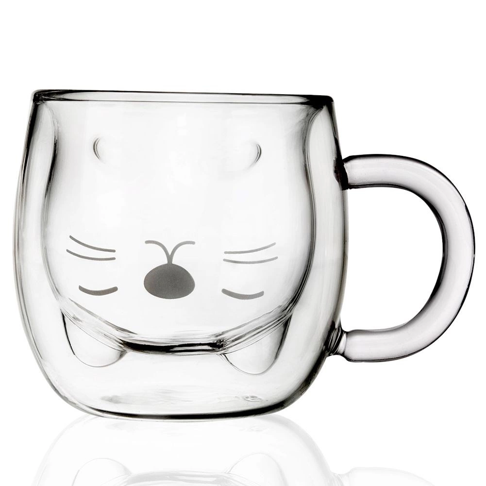 Élvezze a kávét vagy a kakaót a cuki cicás pohárban, amely a dupla falnak köszönhetően tovább tartja melegen vagy hidegen az italt, miközben a külső felület hűvösebb marad tapintásra. A pohár strapabíró boroszilikát üvegből készült, amely jobban tűri a hősokkokat és könnyű kézben tartani.