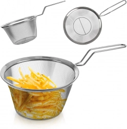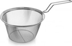 A univerzális konyhai kosár remek segítőtárs a mindennapi főzéshez. A finom rozsdamentes hálónak köszönhetően könnyedén és gyorsan leszűrheti a tésztát, a zöldséget, vagy kisütheti a hasábburgonyát és ropogós chipset. A hosszú fogantyú kényelmes és biztonságos tartást biztosít a fazék vagy serpenyő fölött.