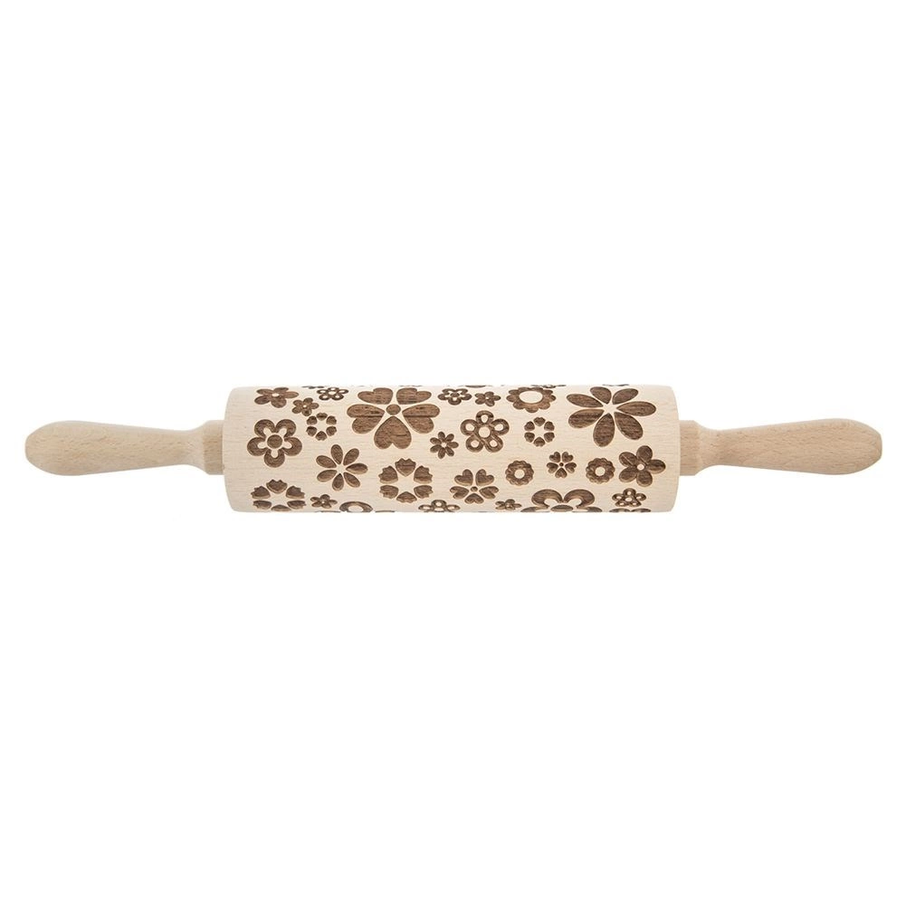 Fedezze fel a dombornyomott fa sodrófát forgó középrésszel és virágmintával, amellyel könnyedén készíthet dekoratív kekszeket, linzereket, fondantot és marcipánt. Minőségi bükkfából készült, kényelmes fogantyúkkal a könnyű és precíz nyújtáshoz.