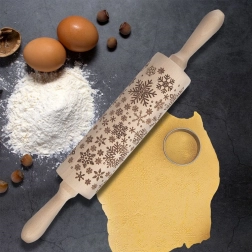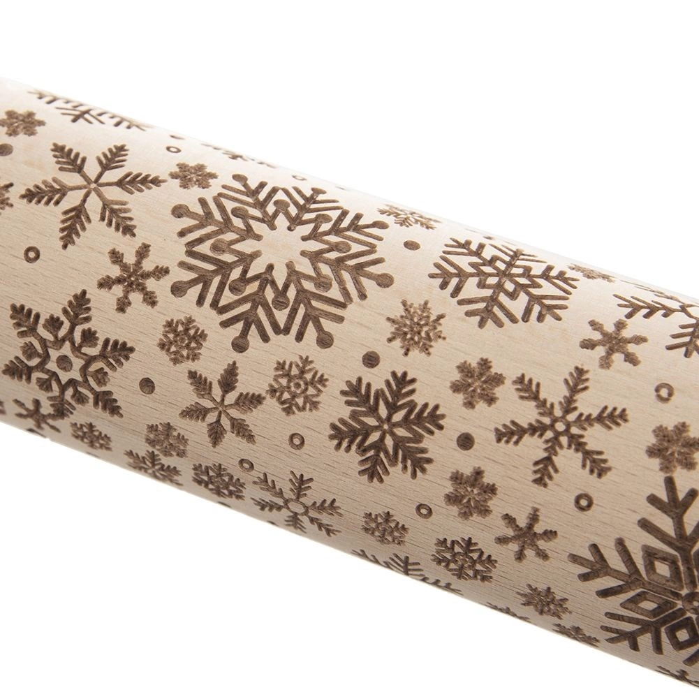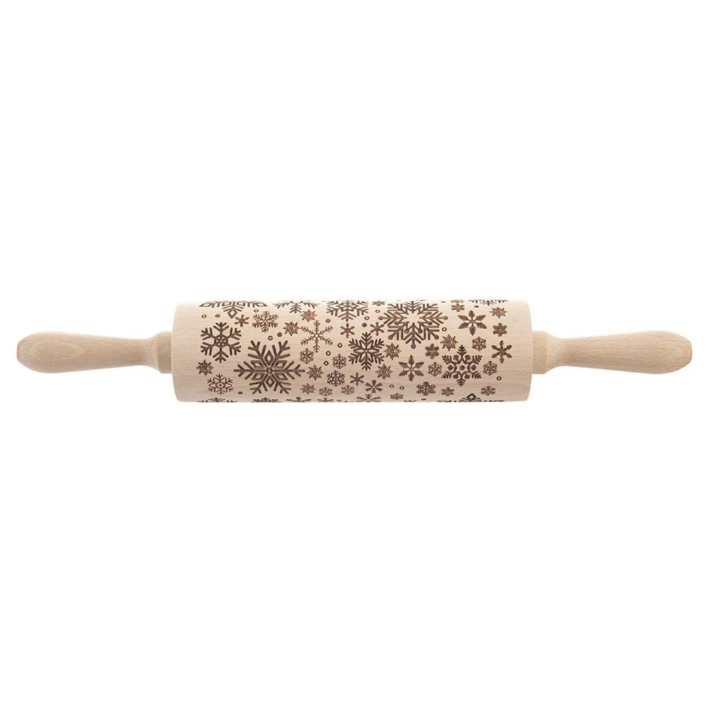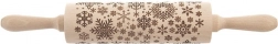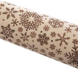 Fa dombornyomott nyújtó sodró a hópelyhek mintájával a kekszek, aprósütemények és fondant könnyű díszítéséhez. Kényelmes forgatható kivitel ergonomikus fogantyúkkal, minőségi bükkfából természetes antibakteriális tulajdonságokkal, és gyors mintakészítés erőfeszítés nélkül.