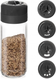 Elegáns, átlátszó üveg fűszertartó forgatható tetővel, három beállítással: teljesen zárt, teljesen nyitott és finom nyílások a kontrollált szóráshoz. Az átlátszó test első pillantásra láthatóvá teszi a tartalmat és a mennyiséget, így kedvenc fűszerei mindig kéznél lesznek.