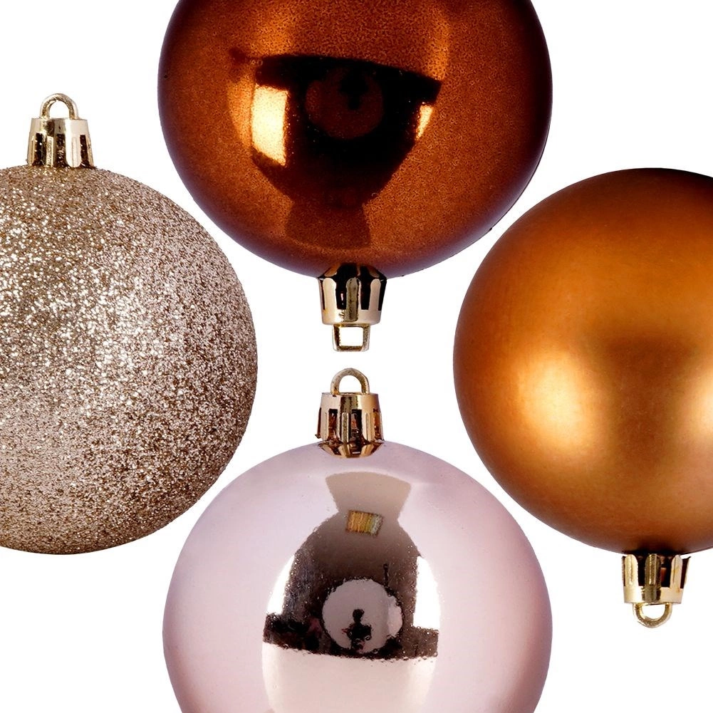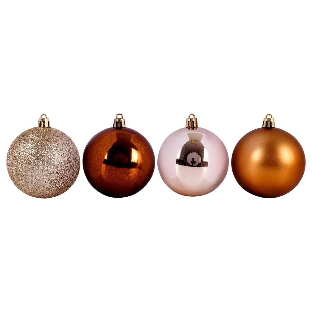 A fényes, matt és brokát gömbök mélységet, fényjátékot és finom csillogást hoznak a fára, igazán ünnepi hangulatot teremtve.