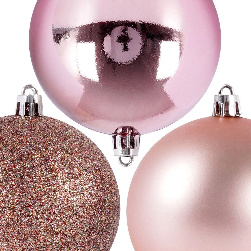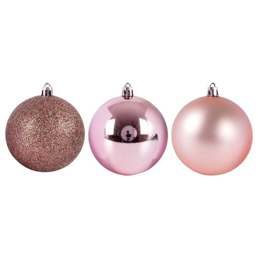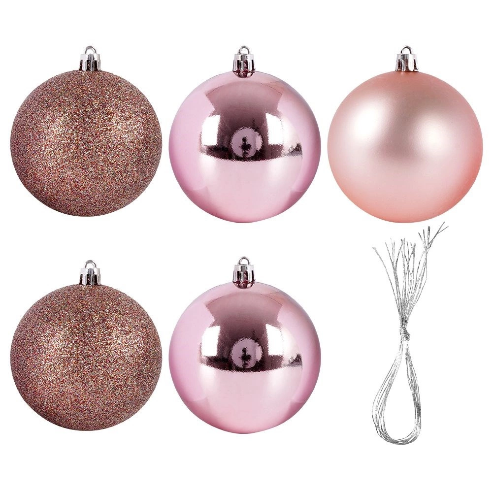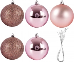 Elegáns, 8 cm átmérőjű rózsaszín karácsonyi gömbkészlet fényes, brokát és matt felülettel. A gömbök tartós műanyagból készülnek, így nem törnek össze úgy, mint az üvegből készültek, és ideálisak gyermekes és kisállatos háztartásokba. A csomag tartalmaz akasztózsinórokat is a fa és ünnepi dekorációk egyszerű díszítéséhez.
